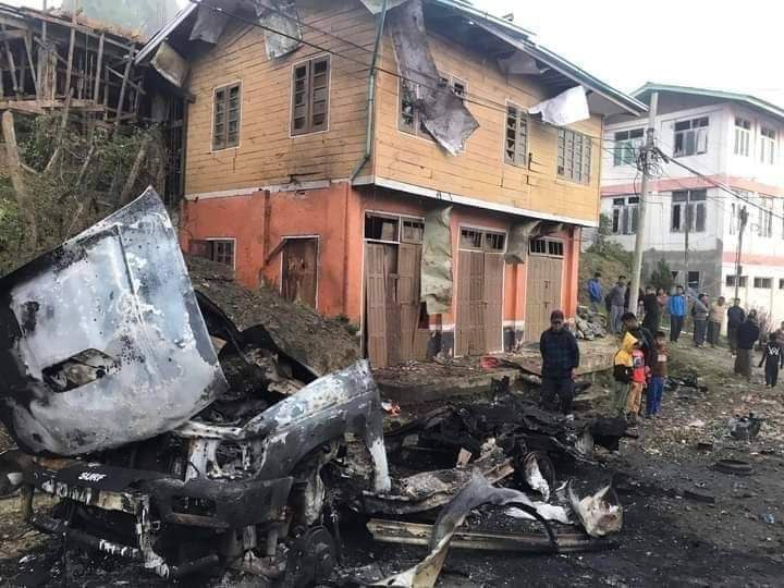 ဖြစ်စဥ်က နိုဝင်ဘာ ၇ ရက် ညနေ ၆ နာရီဝန်းကျင်မှာ ချင်းပြည်နယ်၊ တီးတိန်မြို့နယ်၊ လွယ်ဘွားလ်ရပ်ကွက်၊ အထက (၂) လမ်းခွဲအနီးမှာ ဗုံးသယ်လာတဲ့ CNA တပ်သားတွေရဲ့ Surf ကား ပေါက်ကွဲမှုဖြစ်ပွားပြီး ကားရော လူတွေပါ တစ်စစီပျက်စီးသေဆုံးခဲ့သလို လူ့ခန္ဓာကိုယ် အရိုးအသားတွေလည်း ဖွာထွက်ကုန်တာကြောင့် အလောင်းကောက်မရခဲ့တဲ့အပြင် အနီးအနားက နေအိမ်ခုနစ်လုံးလည်း ထိခိုက် ပျက်စီးခဲ့တယ်လို့ ဒေသတွင်း သတင်းဌာနတွေက ဖော်ပြထားပါတယ်။