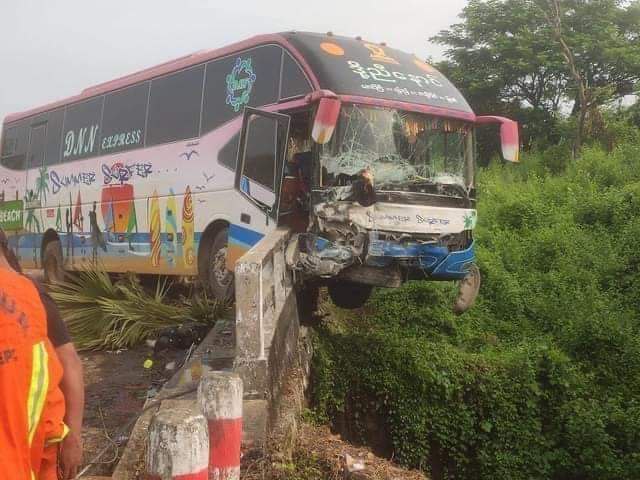 EXPRESS ခရီးသည်တင်ယာဥ်တစ်စီးက အိမ်စီးယာဥ်ကို ဝင်ရောက်တိုက်မိပြီး အမျိုးသမီးတစ်ဦး ထိခိုက်ဒဏ်ရာရရှိခဲ့တဲ့ ဖြစ်စဥ် ဒီနေ့ နိုဝင်ဘာ ၁၀ ရက် မနက် ၇ နာရီ ဝန်းကျင်အချိန်ခန့်က ရန်ကုန်-မန္တလေး အမြန်လမ်းမကြီးပေါ်မှာ ဖြစ်ပွားခဲ့တယ်လို့ အမြန်လမ်းမီးသတ်တပ်ဖွဲ့ ကနေ သိရပါတယ်။