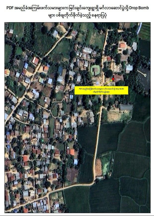 PDF များက ရွှေဘိုမြို့နယ်၊ မြင်းချင်းကျေးရွာရှိ မင်္ဂလာဆောင်ပွဲနှင့် သီးလုံးကျေးရွာရှိ ဘုန်းတော်ကြီးကျောင်းမှ ဆွမ်းကျွေးအလှူပွဲကို Drop Bomb များဖြင့် ပစ်ချတိုက်ခိုက်ခဲ့သဖြင့် အမျိုးသား ၁ ဦးသေဆုံးပြီး ၁၀ လအရွယ်ကလေးငယ်နှင့် ရဟန်းတော် ၁ ပါး အပါအဝင် စုစုပေါင်း ၁၈ ဦး ဒဏ်ရာရရှိခဲ့ကြောင်း နိုင်ငံတော်စီမံအုပ်ချုပ်ရေးကောင်စီမှ ယနေ့ ထုတ်ပြန်ထားသည်။