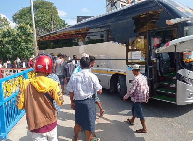 “အဲ့ဒီ့နားက အကွေ့လေး။ ခရီးသည်တင်ကားက ကွေ့လိုက်တာမှာ ရှေ့ကမောင်းနေတဲ့ ဆိုင်ကယ်ကို နောက်ကနေ တိုက်တာ။ ဆိုင်ကယ်နောက်ကစီးလာတဲ့ အမျိုးသမီးက ကားအောက်ကနေ ဆွဲထုတ်ရတယ်။ အသက်တော့မသေသေးပေမဲ့ အခြေအနေက ဒဏ်ရာပြင်းထန်ပါတယ်” လို့ မိတ္ထီလာမြို့ခံဖြစ်သူက မျက်မြင်တွေ့ရှိရတဲ့ အခြေ အနေကို MT News ကို ပြောပါတယ်။