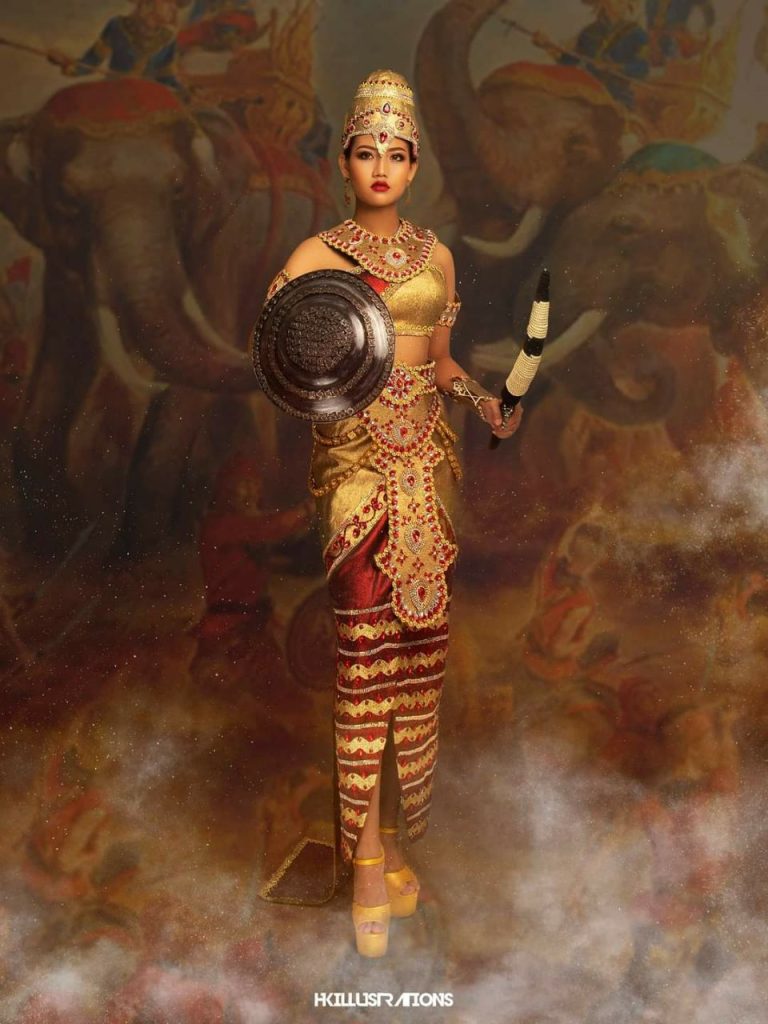 မလေးရှားနိုင်ငံမှာ ကျင်းပနေတဲ့ Miss Tourism International 2023 ပြိုင်ပွဲကြီးမှာ ဝင်ရောက်ယှဥ်ပြိုင်နေတဲ့ မြန်မာနိုင်ငံကိုယ်စားပြု အလှမယ် ခီဆာခင်က National Costume ကို မွန်ဘုရင်မကြီး ရှင်စောပုကို လေးလေးနက်နက် ကြည်ညိုလေးစား မြတ်နိုးစွာနဲ့ ပြန်လည်ဖော်ကျူးဂုဏ်ယူစွာ ဖန်တီးထားတဲ့ ‘မရှုံးသောဧကရီ’ ဝတ်စုံနဲ့ ဝင်ရောက်ယှဥ်ပြိုင်မယ်လို့ ဆိုပါတယ်။