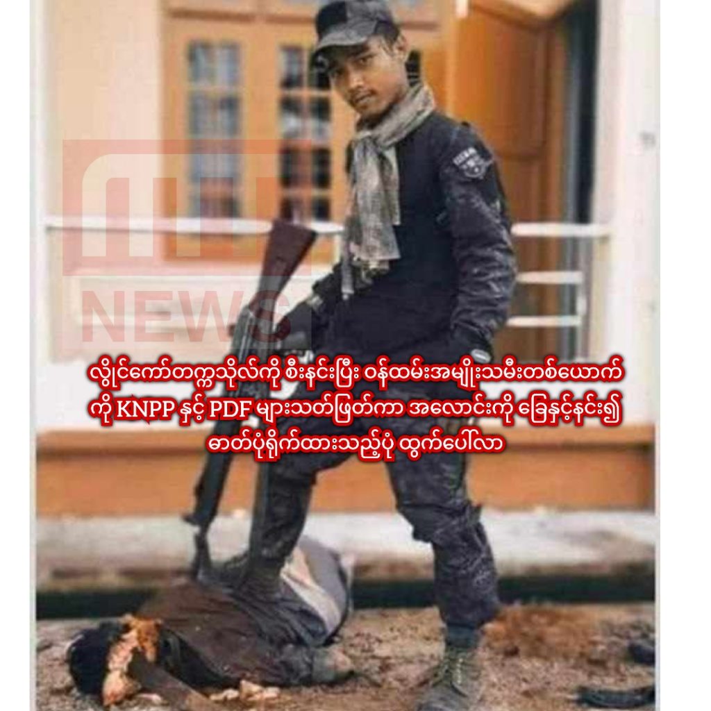 လွိုင်ကော်တက္ကသိုလ်ကို မနေ့က PDF တွေ စီးနင်းချိန် နိုင်ငံ့ ဝန်ထမ်းအမျိုးသမီးတစ်ယောက်ကို KNPP နှင့် PDF တွေ သတ်ဖြတ်ပြီး အလောင်းကို ခြေနှင့်နင်းပြီး ဓာတ်ပုံရိုက်ထားတဲ့ပုံ ဒီနေ့ထွက်ပေါ်လာပါတယ်။