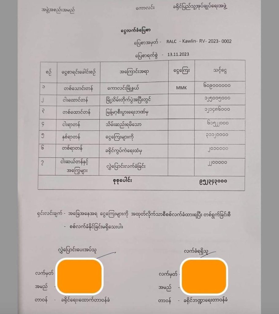 ကောလင်းခရိုင်၊ မြန်မာ့စီးပွားရေးဘဏ်က ငွေသားလက်ကျန် ကျပ်ငွေသန်းပေါင်း ၉၅၂ ဒသမ ၃၄၃ ကိုလက်ခံသိမ်းဆည်းထားတယ်လို့ NUG က ကြေညာပါတယ်။
