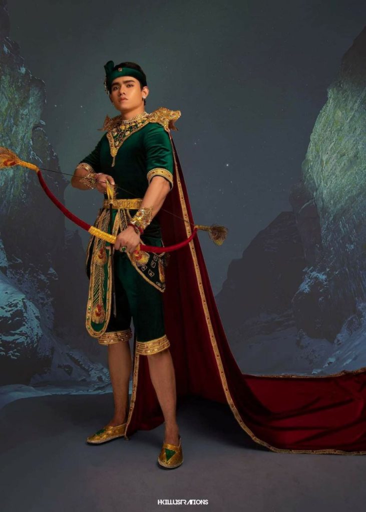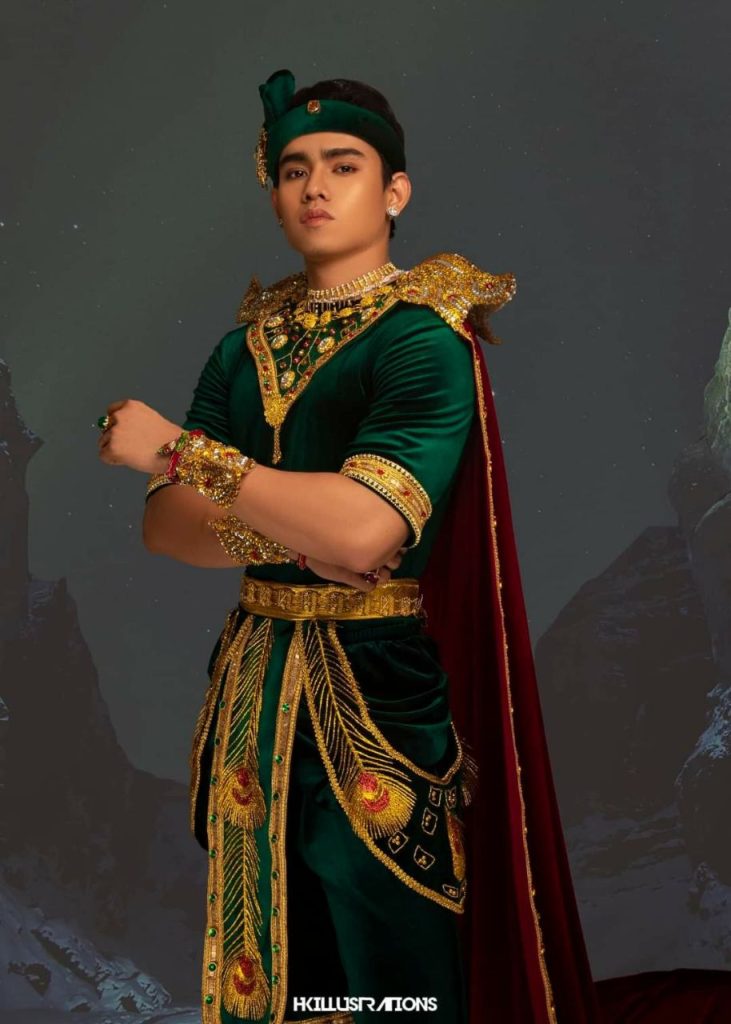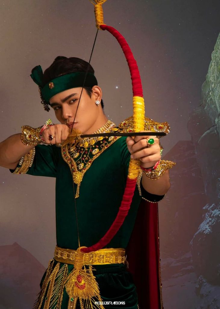 ဒီဝတ်စုံမှာ ရှေးမြန်မာ နန်းတွင်းခေတ် မင်းညီမင်းသားတစ်ပါးရဲ့အသွင်အပြင်ကို ထင်ရှားပေါ်လွင်အောင် မြန်မာ့သမိုင်းရာဇဝင်များစွာထဲကမှ ပင်းတယမြို့ဒေသရဲ့ထင်ရှားတဲ့ရာဇဝင်တစ်ခုဖြစ်တဲ့ “သုဓနု “ မင်းသားရဲ့ လေးအတတ်ပညာမှာ တစ်ဖက်ကမ်းခက် ထူးချွန်တတ်မြောက်ဟန်ကို အခြေခံပီး လေးနဲ့မြှား အတတ်ပညာကို မင်းသားတစ်ပါးရဲ့ ခမ်းနားထည်ဝါမှုတို့နဲ့အတူ ပေါင်းစပ်ဖန်တီးချုပ်လုပ်ပုံဖော်ထားပါတယ်။ဘုရင်မင်းညီမင်းသားတို့ ဆင်မြန်းတဲ့တန်ဆာတွေအဖြစ် ရွှေကျောက်မြတ်ရတနာတို့ကိုလည်း ထည့်သွင်း ပုံဖော်ထားပြီး အားမာန်အပြည့်နဲ့ ခန့်ညားထည်ဝါနေတဲ့ လေးသည်တော် မင်းသားတစ်ပါးအသွင် ဒီဇိုင်နာ T Shine Htet က ပုံဖော်ဖန်တီး ချုပ်လုပ်ပေးထားပါတယ်။