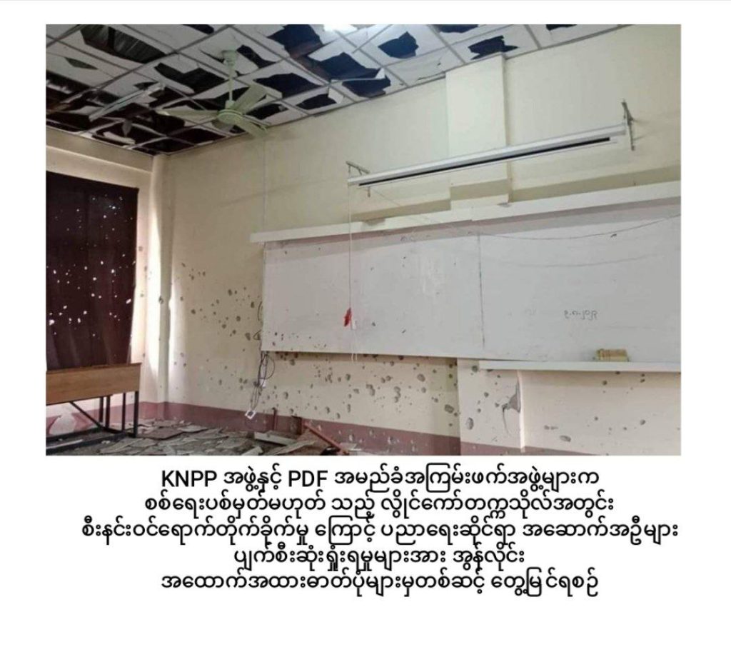 KNPP အဖွဲ့နှင့် PDF အဖွဲ့များ၏ ယခုလုပ်ရပ်သည် စစ်ရေးနှင့်သက်ဆိုင်သော ပစ်မှတ်မဟုတ်ဘဲ နိုင်ငံအတွက်အရေးကြီးသည့် ပညာရေးဆိုင်ရာ အဆောက်အဦများကို အကာအကွယ်ရယူပစ်ခတ်တိုက်ခိုက်ခဲ့ခြင်း၊ ဆရာ၊ ဆရာမများ၊ ပညာရေးဆိုင်ရာ ဝန်ထမ်းများနှင့် ကျောင်းသား၊ ကျောင်းသူများကို အသက်အန္တရာယ်ဇုံမှ ကင်းလွတ်အောင် ထွက်ခွာခွင့်ပြုရမည့်အစား အတင်းအဓမ္မဖမ်းဆီးချုပ်နှောင်၍ လူသားတံတိုင်းအဖြစ် အသုံးချခဲ့ခြင်း၊ ပညာရေးဆိုင်ရာဝန်ထမ်းများနှင့် ကျောင်းသား၊ ကျောင်းသူ အင်အား ရာဂဏန်းမျှရှိသည့် တက္ကသိုလ်ကို ရည်ရွယ်ချက်ရှိစွာဖြင့် ဦးတည် တိုက်ခိုက်ခဲ့ခြင်း၊ ပညာရေးဆိုင်ရာအဆောက်အဦများကို ဖျက်ဆီးခြင်း၊ အကာအကွယ် ရယူ တိုက်ခိုက်ခြင်းဖြစ်၍ ဂျီနီဗာကွန်ဗန်းရှင်း (၄) ရပ်၏ ဘုံအာတီကယ် (၃) နှင့် နောက် ဆက်တွဲစာချုပ် (၁)၏ အာတီကယ်(၅၂) တို့အရ စစ်ရာဇဝတ်မှု (War Crime) ကျူးလွန်ရာရောက်ပြီး ၎င်းအခြေခံသဘောတရားများသည် အပြည်ပြည်ဆိုင်ရာ ဓလေ့ထုံးတမ်းဥပဒေသဘောလည်း သက်ဝင်လျက်ရှိသည်။ ထို့အပြင် ၂၀၂၁ ခုနှစ်၊ အောက်တိုဘာ ၂၉ ရက်တွင် ကုလသမဂ္ဂလုံခြုံရေး ကောင်စီအဖွဲ့ဝင် ၁၅ နိုင်ငံတို့သည် စာသင်ကျောင်းများ၊ ကလေးသူငယ်များနှင့် ဆရာ၊ ဆရာမ များအပေါ် ပစ်မှတ်ထားတိုက်ခိုက်ခြင်းအား ရှုတ်ချပြီး ပဋိပက္ခတွင် ပါဝင်သူများအနေဖြင့် ပညာသင်ကြားခွင့် အခွင့်အရေးကို အကာအကွယ်ပေးရန် တိုက်တွန်းသည့် ဆုံးဖြတ်ချက်အမှတ် ၂၆၀၁ (၂၀၂၁)အား တညီတညွတ်တည်း ချမှတ်ခဲ့ကြပြီးဖြစ်၍ KNPP အဖွဲ့နှင့် PDF အဖွဲ့များ၏ ယခုလုပ်ရပ်သည် ကုလသမဂ္ဂ လုံခြုံရေးကောင်စီ၏ ဆုံးဖြတ်ချက်အမှတ် ၂၆၀၁(၂၀၂၁) UN Security Council Resolution 2601(2021) – the protection of Education in armed conflict ကိုလည်း ချိုးဖောက်ရာ ရောက်သည်။