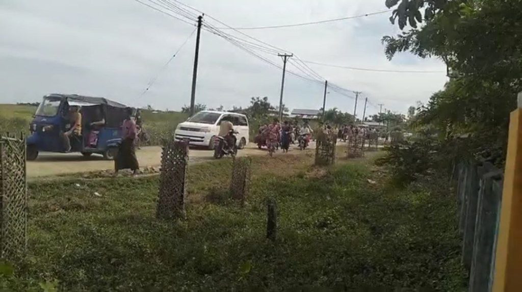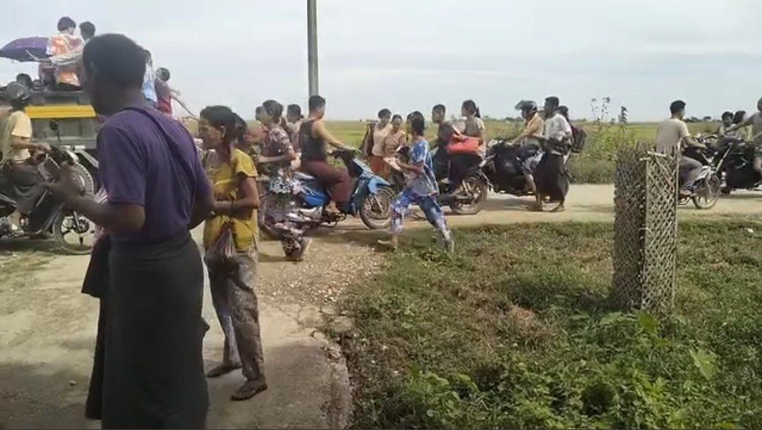 ပုံစာ – အေအေ က ဝင်တိုက်ပြီးနောက် နိုဝင်ဘာလ ၁၇ ရက်တွင် ပေါက်တောမြို့မှ တိမ်းရှောင်လာသည့် ပြည်သူများကို တွေ့မြင်ရစဉ်
