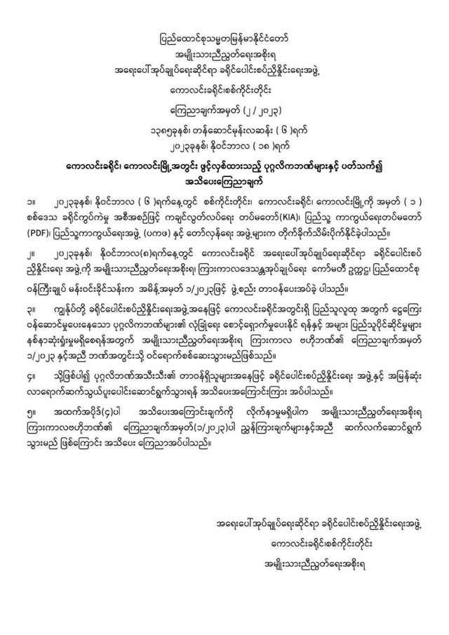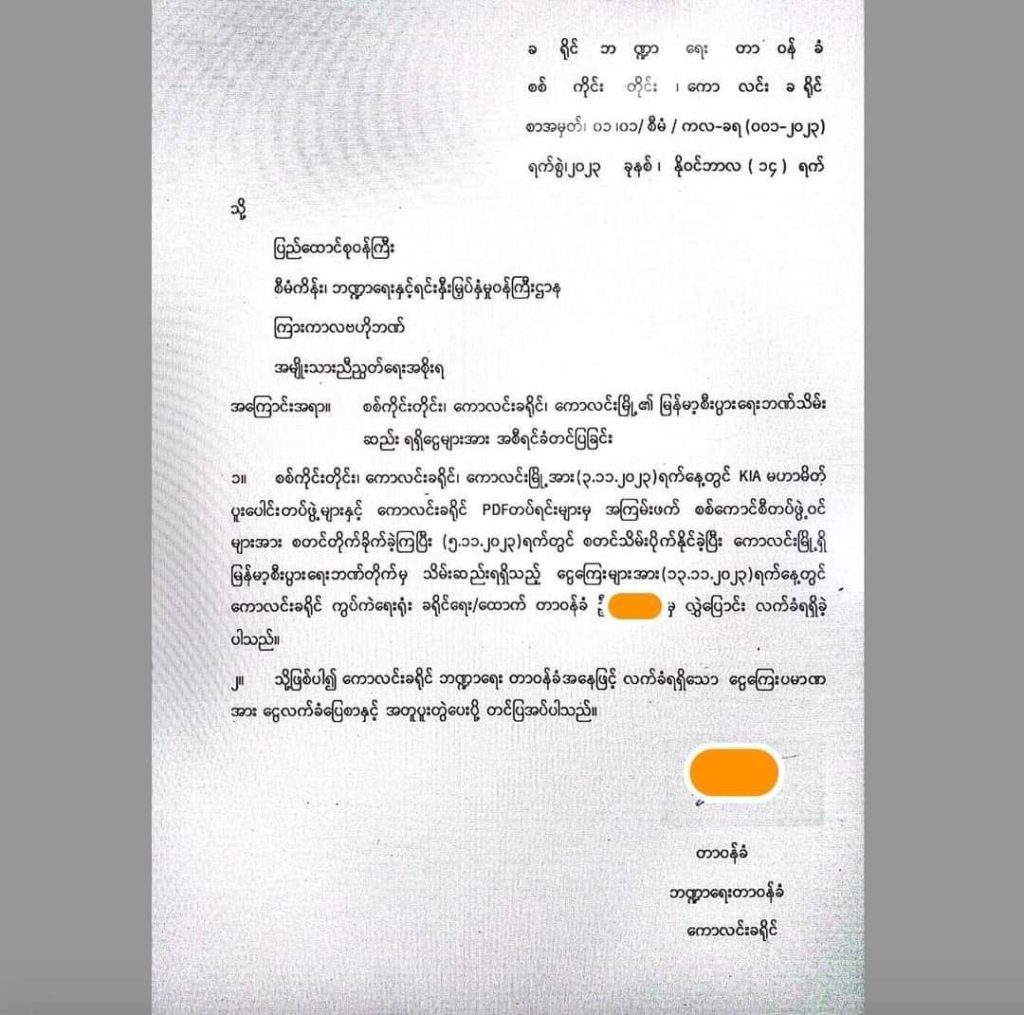 ကောလင်းမြို့အတွင်း ဖွင့်လှစ်ထားသည့် ပုဂ္ဂလိကဘဏ်များအတွင်း NUG ၏ PDF များက ဝင်ရောက်စစ်ဆေးမည်ဟု ယခု ကြေညာချက်ထုတ်သည်။