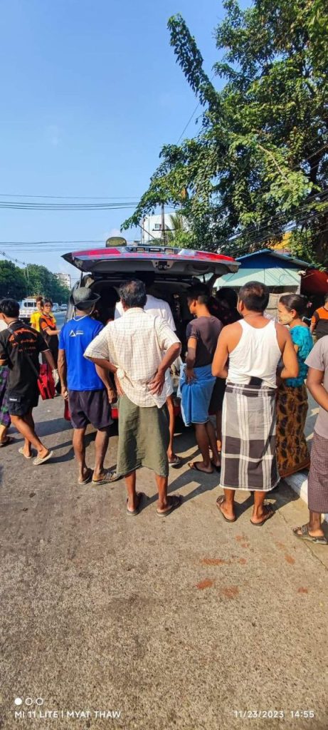 “ကျွန်တော်တို့ရောက်တဲ့အချိန်မှာ လူနာမရှိတော့ဘူး။ သွေးထွက်လွန်မှာစိုးရိမ်ပြီး သူ့အိမ်ရှေ့က Taxi နဲ့ပဲ ဆေးရုံသွားတာ။ အခုကြားကတော့ လူနာက သက်သာတယ်လို့တော့ သိရတယ်။ ကျွန်တော်တို့ရောက်တဲ့အချိန်မှာ ဘေးပတ်ဝန်းကျင်က ပြောတာတော့ တူဖြစ်သူက မုန့်ပုံးနဲ့ လာကန်တော့တာ။ ပြီးမှ အိမ်မှာ ဘယ်မှ မရှိဘူးဆိုတာကိုသိပြီး အချက်ပြလှမ်းခေါ်လို့ နောက်ထပ်နှစ်ယောက်ရောက်လာတာလို့တော့ သိရတယ်။ ဒဏ်ရာကတော့ ဘယ်လိုလက်နက်ကြောင့်ရတယ်ဆိုတာတော့ မသိဘူး။ ကျွန်တော်တို့ ရောက်တဲ့အချိန်မှာ လူနာလည်းမရှိတော့ဘူး” ဟု သုဝဏ္ဏပရဟိတအသင်းမှ တာဝန်ရှိသူက ပြောသည်။