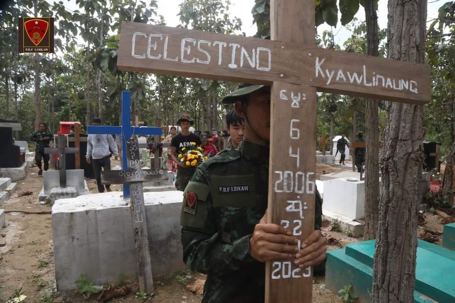လွိုင်ကော်မြို့သိမ်းတိုက်ပွဲမှာ သေဆုံးခဲ့တဲ့ အသက်မပြည့်သေးတဲ့ Loikaw PDF အဖွဲ့ဝင် ကျော်လင်းအောင်ရဲ့ စျာပနကို နိုဝင်ဘာ ၂၃ ရက်က ပြုလုပ်ခဲ့ပါတယ်။