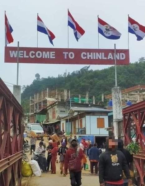 ချင်း PDF ပူးပေါင်းတပ်တွေက အိန္ဒိယ-မြန်မာနယ်စပ်ဂိတ်၊ ရိဒ်ခေါဒါရ်မြို့ကို နိုဝင်ဘာ ၁၃ ရက်ကစ သိမ်းပိုက်ထားအပြီး ရက်သတ္တပတ်နှစ်ပတ်မပြည့်ခင်မှာ မြန်မာနိုင်ငံလို့ ကမ္ဘာကအသိအမှတ်ပြုထားတဲ့ အသိအမှတ်ပြု “REPUBLIC OF THE UNION OF MYANMAR” ဆိုင်းဘုတ်ကို ဖြုတ်ချလိုက်ပြီး”WELCOME TO CHINLAND” ဆိုင်းဘုတ် ပြောင်းလဲတပ်ဆင်လိုက်ပြီလို့ သိရပါတယ်။