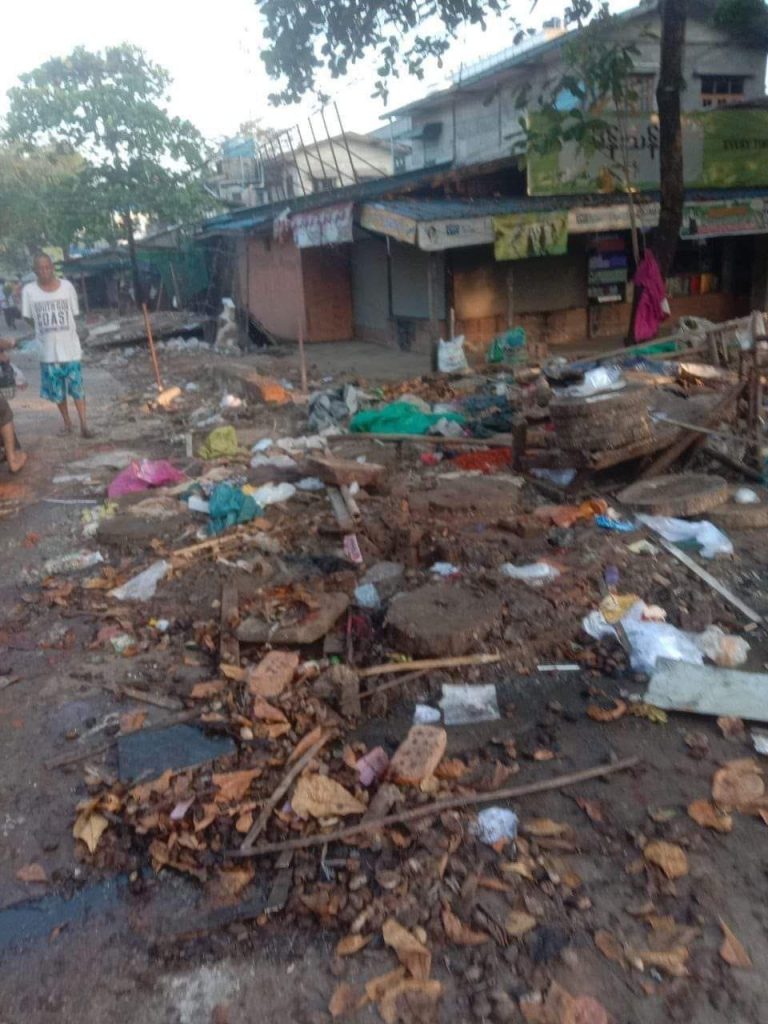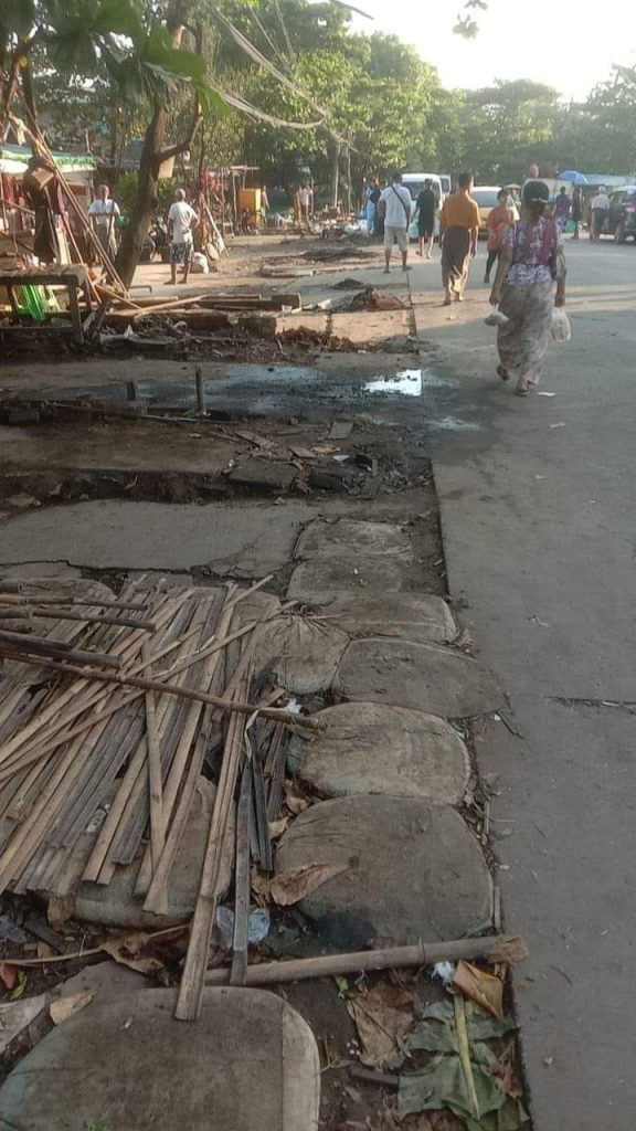 “ပျံကျစျေးက ဆိုင်ခန်း ၁၀၀ ကျော်ကို ညတွင်းချင်း ရှင်းလင်းလိုက်တာ” လို့ လုံခြုံရေးတပ်ဖွဲ့နဲ့ နီးစပ်သူတစ်ဦးက ဆိုပါတယ်။