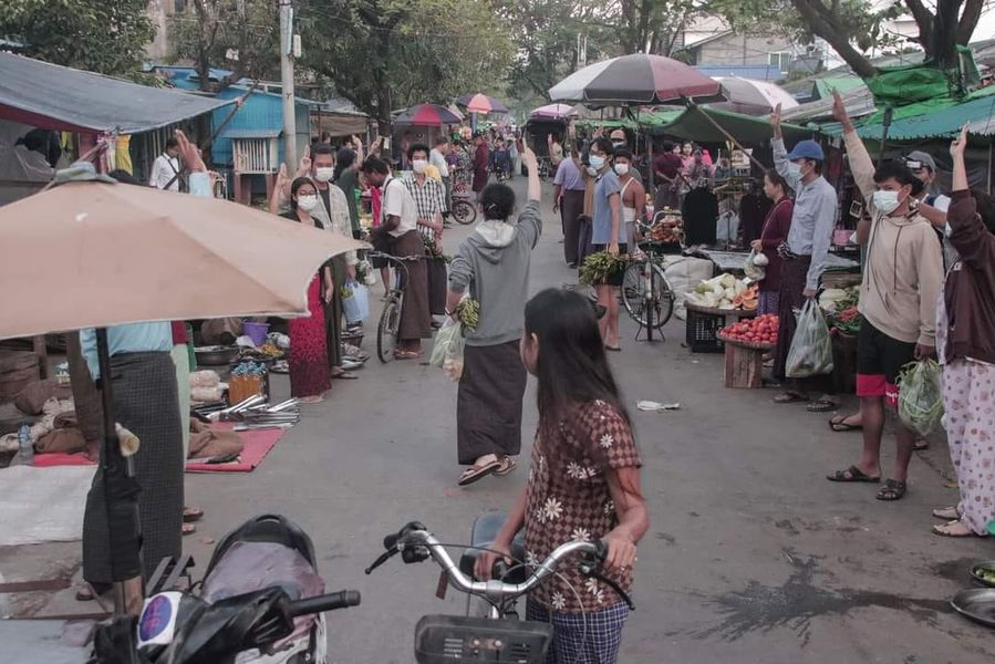 ပုံစာ။ AJAY က ဆန္ဒပြရာတွင် မြောက်ဒဂုံ ၄၀ ရပ်ကွက် ပျံကျစျေးပတ်လည်နေသူများ ပူးပေါင်းပါဝင်မှုဖော်ပြခဲ့ပုံ၊ ပျံကျစျေးရှင်းလင်းခံရပုံနှင့် ထုတ်ပြန်ချက်။