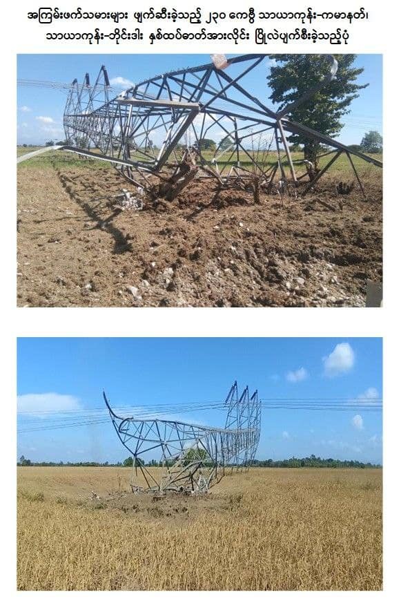 တစ်နိုင်ငံလုံးမပေးနိုင်သေးသည့် လျှပ်စစ်ကဏ္ဍကို ဖျက်ဆီးခြင်းကြောင့် လူမှုစီးပွားဘဝ တိုးတက်သင့်သလောက် မတိုးတက်ခဲ့ဟုပါ ပြော