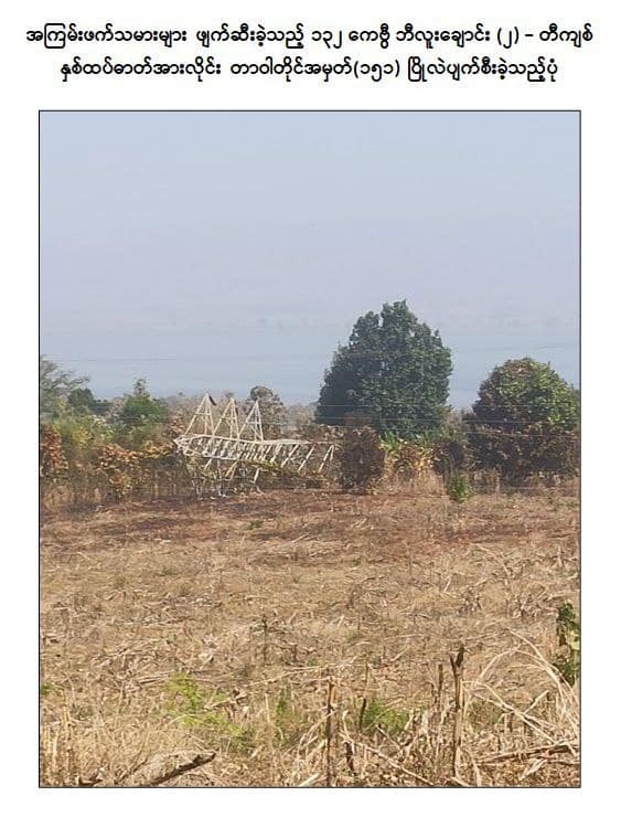 NUG၊ PDF နှင့် EAO အဖွဲ့များက မိုင်းထောင်ဖောက်ခွဲခြင်း၊ အဝေးမှပစ်ခတ်ခြင်းနှင့် Drop Bomb ချ တိုက်ခိုက်မှုတို့ကြောင့် သုံးနှစ်အတွင်း လျှပ်စစ်တာဝါတိုင် ၈၁ ခုအထိ ဖျက်ဆီးခဲ့ပြီး ကယားပြည်နယ်အတွင်း ပျက်စီးမှု အများဆုံးဖြစ်ခဲ့ကြောင်း နိုင်ငံတော်စီမံအုပ်ချုပ်ရေးကောင်စီ (SAC) ပြောရေးဆိုခွင့်ရှိသူ ဗိုလ်ချုပ်ဇော်မင်းထွန်းက ယနေ့ ပြောကြားသည်။