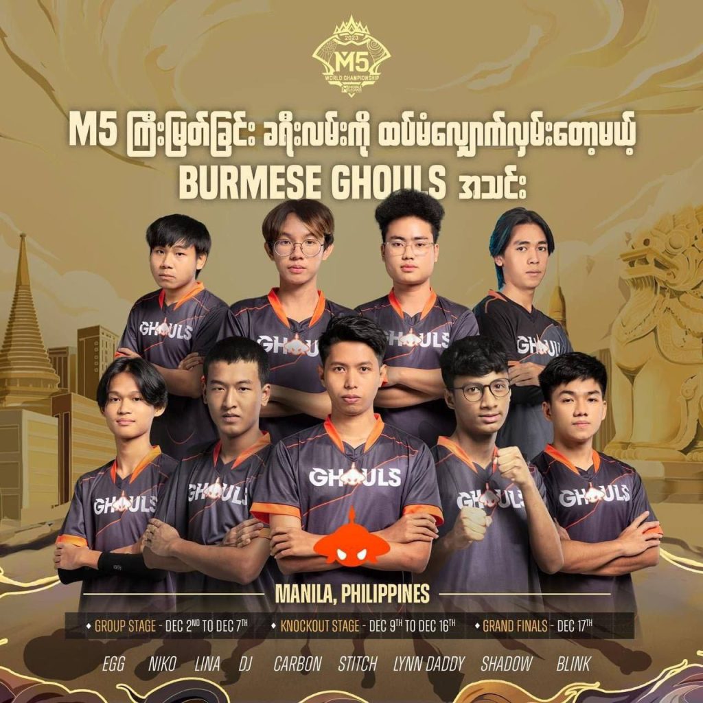 မြန်မာ့ MLBB Esports သမိုင်းတစ်လျှောက် အမြင့်မားဆုံး အဆင့်ဖြစ်ခဲ့တဲ့ M2 မှာ Final ထိ တက်လှမ်းနိုင်ခဲ့ပြီး ကမ္ဘာ့အဆင့် ၂ နေရာကို ပိုင်ဆိုင်နိုင်ခဲ့တဲ့ Burmese Ghouls အသင်းဟာ အခု M5 မှာလည်း အသင်းသားတွေ မတူတော့ပေမဲ့ ဘယ်လိုစွမ်းဆောင်ရည်တွေ ထုတ်ပြနိုင်မလဲဆိုကတော့ မြန်မာနိုင်ငံက ပရိသတ်တွေတင်မကဘဲ နိုင်ငံတကာက ပရိသတ်တွေကပါ စောင့်ဆိုင်းနေကြတာပဲဖြစ်ပါတယ်။