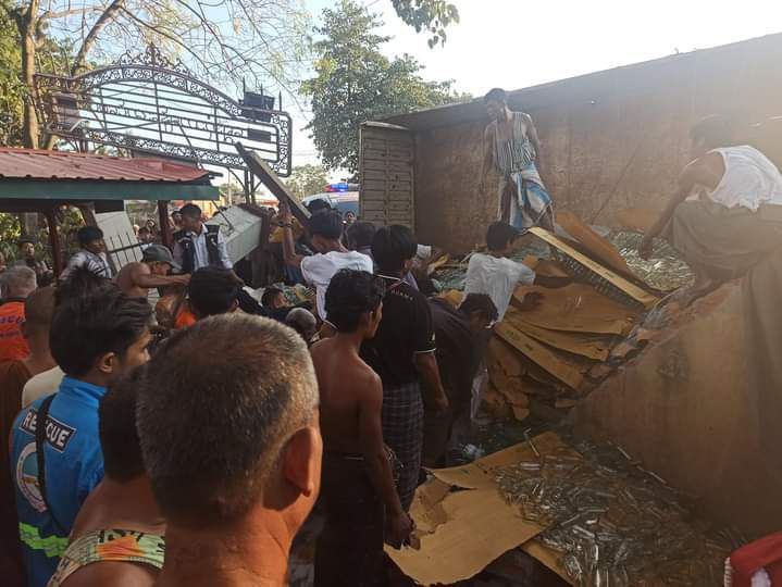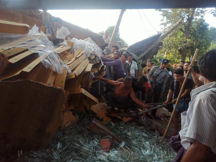 ပုလင်းခွံတွေ တင်ဆောင်လာတဲ့ တွဲကားတစ်စီး ကွေ့ကြောမှာ အရှိန်လွန်တိမ်းမှောက်ရာက ပလုံကောက်တဲ့ ဘေးတွဲဆိုင်ကယ်တစ်စီးအပေါ် ပိပြီး အမျိုးသားတစ်ဦးဒဏ်ရာအပြင်းအထန်ရရှိတဲ့ ဖြစ်စဉ် ဒီနေ့ ဒီဇင်ဘာ ၂ ရက် ညနေ ၄ နာရီ မိနစ် ၄၀ ခန့်က ပဲခူးတိုင်းဒေသကြီး၊တောင်ငူမြို့၊ ရွှေဘိုလေးကွေ့မှာ ဖြစ်ပွားခဲ့တယ်လို့ဒေသခံ ပရဟိတ အသင်းတချို့ထံက သိရပါတယ်။