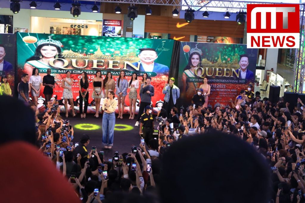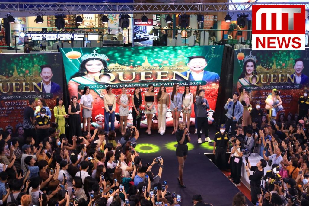 Miss Grand International 2023 Top 10 ၁၀ ယောက်နဲ့ Miss Grand International 2023 1st Runner Up မြန်မာ နိုင်ငံကိုယ်စားပြုအလှမယ် နီနီလင်းအိမ်တို့ကို Home Coming ကြိုဆိုပွဲ အခမ်းအနား ဒီနေ့ ဒီဇင်ဘာ ၇ ရက် နေ့လည်ပိုင်းက ရန်ကုန်မြို့ Myanmar Plaza Promotion Area မှာ စည်ကားသိုက်မြိုက်စွာ ကျင်းပခဲ့ပါတယ်။