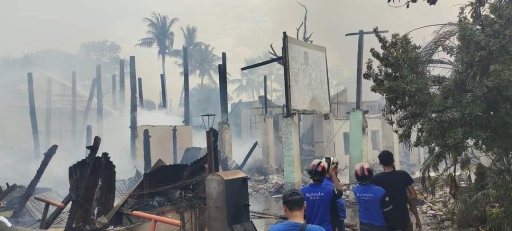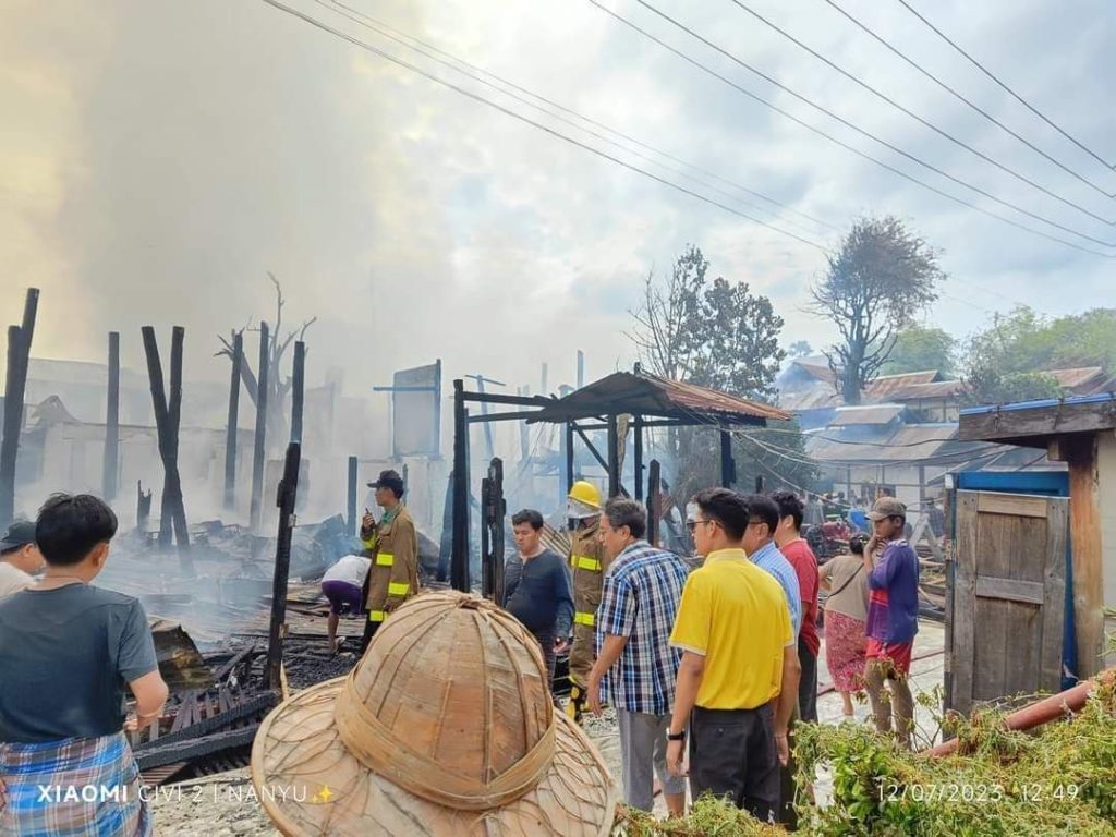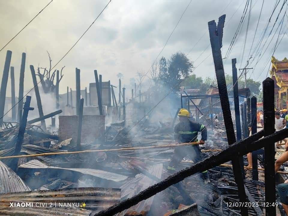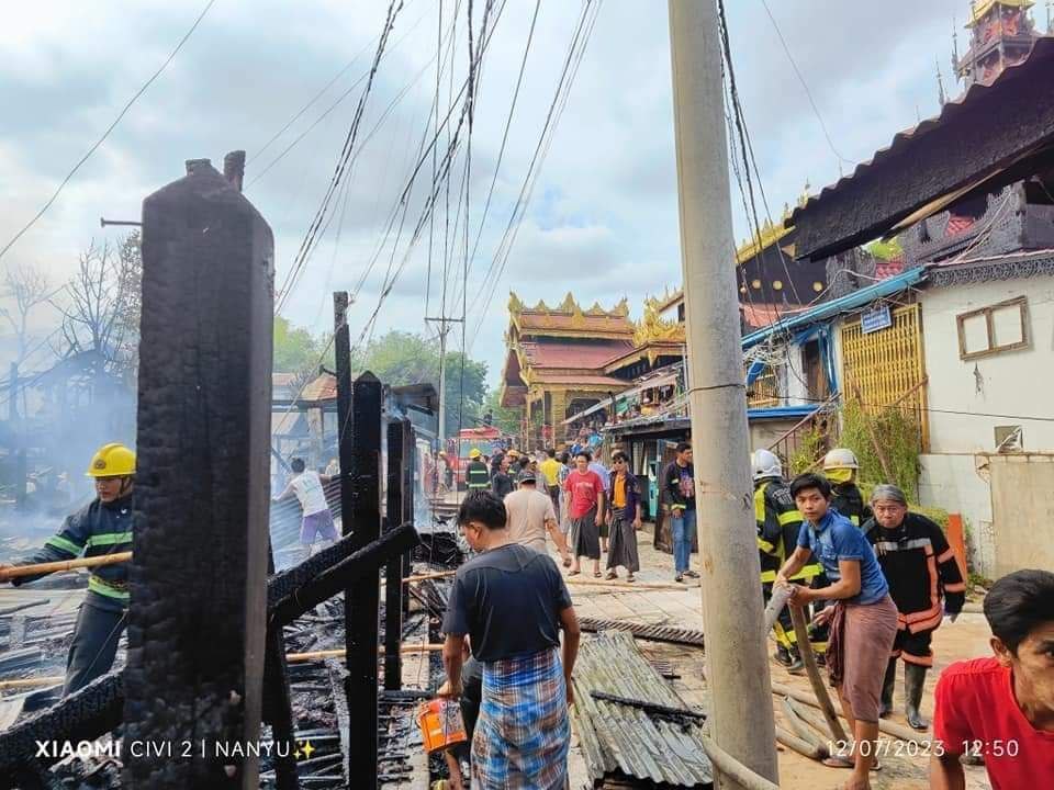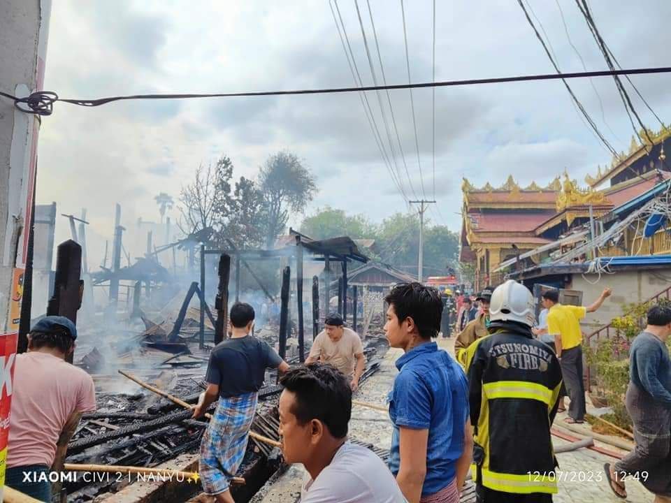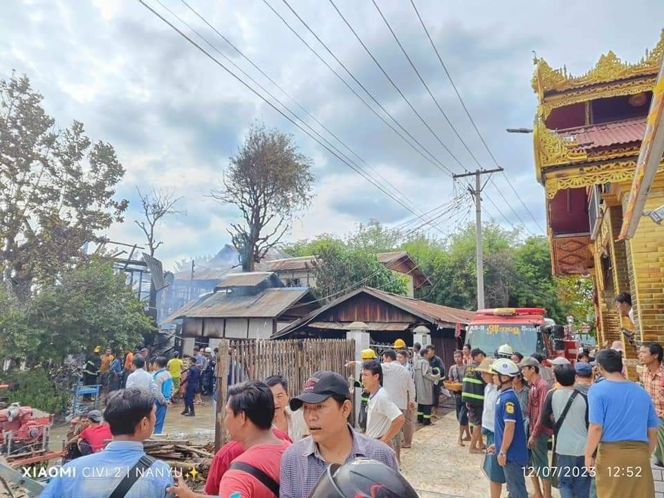 ပုံစာ။ တောင်ပြုံးနတ်နန်းအနီး မီးလောင်မှုမြင်ကွင်း (Photo-Wai Lin & Nan Yu & နန်းတော်ရှေ့ )