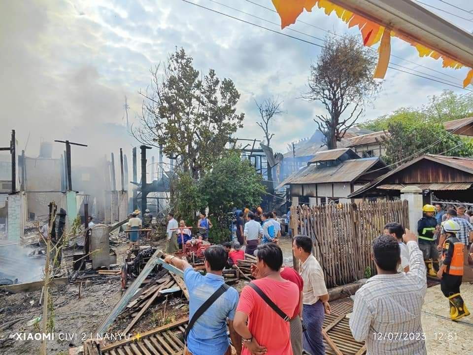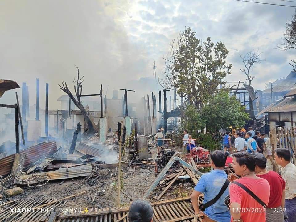 မီးလောင်မှုဖြစ်စဥ်က ဒီနေ့ ဒီဇင်ဘာ ၇ ရက် မနက် ၁၁ နာရီခွဲခန့်က ၁၂ နာရီ ၅၀ မိနစ်အထိ မီးလောင်ခဲ့တာဖြစ်ပြီးတော့ မီးလောင်မှုဖြစ်ပွားရတဲ့အကြောင်းအရင်းကို မသိရသေးဘဲ နေအိမ် ၁၂ လုံး မီးလောင်ဆုံးရှုံးခဲ့တယ်လို့ ဒေသခံတွေဆီက သိရပါတယ်။