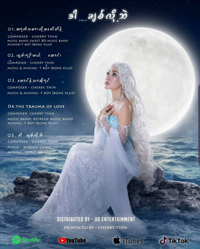 “ ဒီ Album တခုလုံး ကိုယ့်ဘာသာဥာဏ်မှီသလောက် ရေးထားပါတယ်။ ကိုယ်က တေးရေးဆရာ တစ် ယောက်မဟုတ်တော့ လိုအပ်ချက်တွေရှိသေးတယ်။ လိုအပ်ချက်ရရှိရင် နားလည်ပေးပါဦးလို့။ Pomo တင်ထားချိန်မှာ ချယ် ပရိသတ်တွေက သဘောကျကြတယ်။ Music Video လေးတွေကို ချယ်သေချာလေးရိုက်ထားပါ တယ်။ မင်းသား ဗညားဘုန်းပြည့်က ကျိုက်ထီးရိုး အထိ တကူးတက အပင်ပန်းခံလိုက်ရိုက်ပေးတယ်။ မောင် လေး ခန့်ကျော် ပရိသတ်တွေမြင်တွေ့နေကျမဟုတ်တဲ့ ပုံစံမတူအောင် ရိုက်ကူးထားတယ်။ ကိုမိုးစက်လည်း အ များကြီးကူညီပေးကြတယ်။ ချယ်ရဲ့ ဒီခွေလေးကို အားပေးနားဆင်ပြီး ဝေဖန်အကြံပြုပေးပါဦး”လို့ သူမကဆက်ပြောပါတယ်။