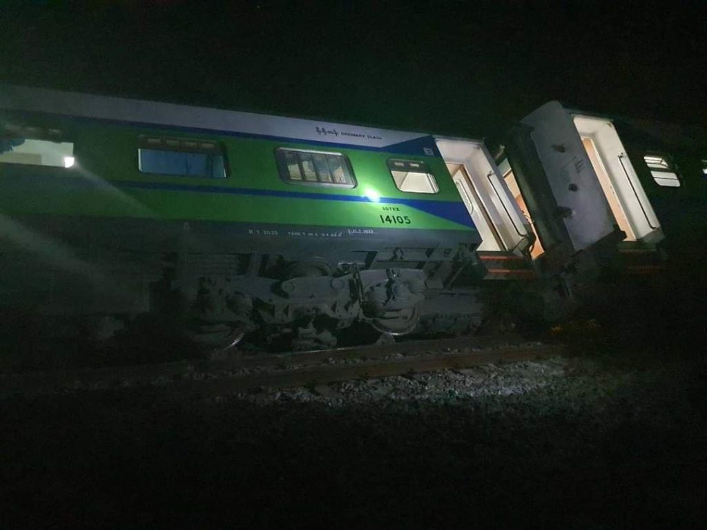 ပဲခူးတိုင်းဒေသကြီး၊ ကျောက်တံခါးမြို့နယ်၊ ရန်ကုန်-မန္တလေး မီးရထားလမ်းပိုင်းမှာ KNU နဲ့ PDF တွေ ထောင်ထားတဲ့ တိုက်မိုင်းပေါက်ကွဲမှုဖြစ်ပွားတာကြောင့် အမြန်ရထားတစ်စီးတိမ်းမှောက်မှု ဒီနေ့မနက်က ဖြစ်ပွားခဲ့တယ်လို့ ကနဦးသတင်းတွေအရ သိရပါတယ်။