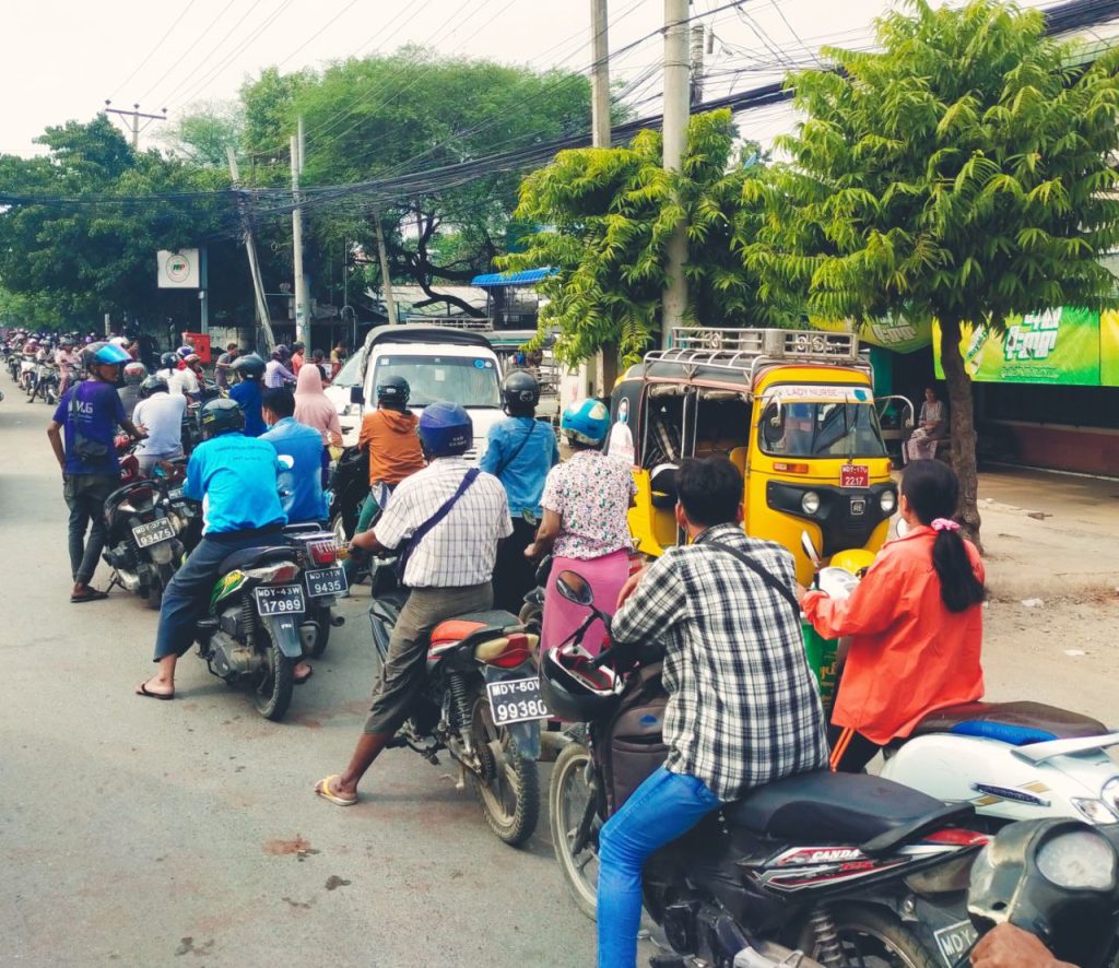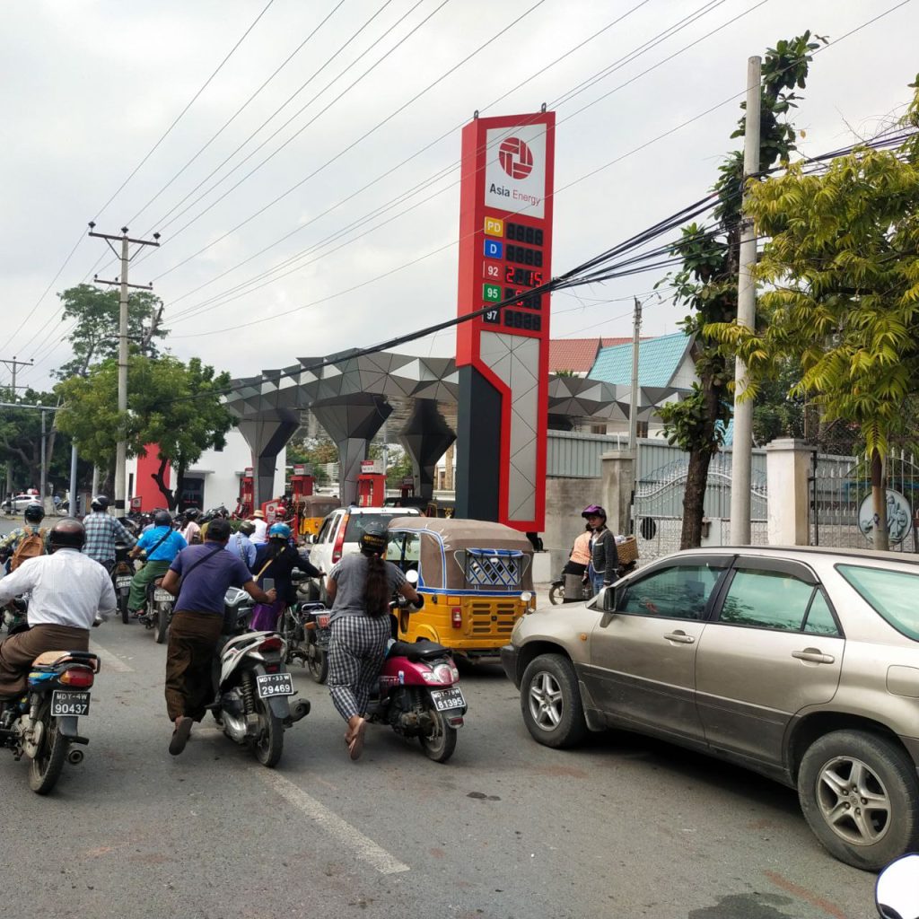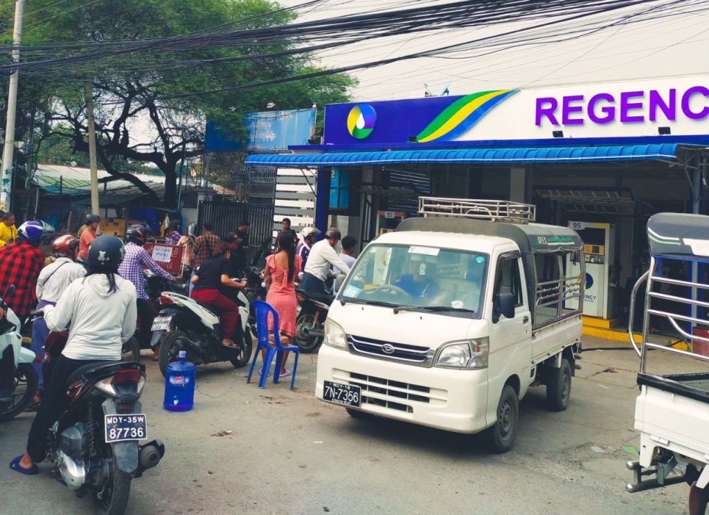 ဒီဇင်ဘာလ ၁၃ ရက်နေ့(ယနေ့)နေ့လည်ပိုင်းတွင် မန္တလေးတိုင်းဒေသကြီး၊ မန္တလေးမြို့ပေါ်ရှိ စက်သုံးဆီအရောင်းဆိုင်တော်တော်များများ ပြန်လည်ဖွင့်လှစ်ရောင်းချပေးနေသော်လည်း တန်းစီတိုး၍ ဝယ်ယူသူများက ယခင်နေ့များအတိုင်း များပြားလျှက်ရှိနေကြပြီး အချို့သောဆီဆိုင်များမှာမူ ရောင်းချပေးနိုင်ခြင်း မရှိသေးသည့်အပြင် ပြင်ပစျေးကွက်တွင် ထက်ဝက်နီးပါး အမြတ်တင်ပြီး ပြန်လည်ရောင်းချနေသည့်စျေးကွက်များလည်း ဆက်လက်ဖြစ်ပေါ်နေသေးကြောင်း သိရသည်။