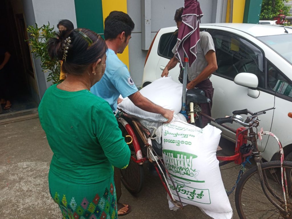 “ရွှေဘိုအကောင်းဆုံးက တစ်သိန်း ၁၈၀,၀၀၀ အိတ်တစ်ဝက်ကို ၉၀,၅၀၀ ပို့ခနဲ့ဆို ၉၁,၀၀၀ ဒါကတော့ အဟောင်းရှင့်။ ရွှေဘိုက အသစ်တော့ပေါ်ပြီ။ ဒါပေမဲ့ ချက်ရင် ထမင်းက လုံးဝမကောင်းလို့ မတင်သေးဘူး။ ကြားပျံက ၁၄၅,၀၀၀၊ တောင်ပျံထူးထူးရှည် အကောင်းဆုံးကတော့ ၁၆၀,၀၀၀ ဒီဆန်က ဒံပေါက်ချက်တဲ့ဆန်ပေါ့” ဟု သင်္ဃန်းကျွန်းစံပြဈေးတွင် ဆန်လက်ကားရောင်းချနေသည့်ဆိုင်မှ တာဝန်ရှိသူက ပြောသည်။
