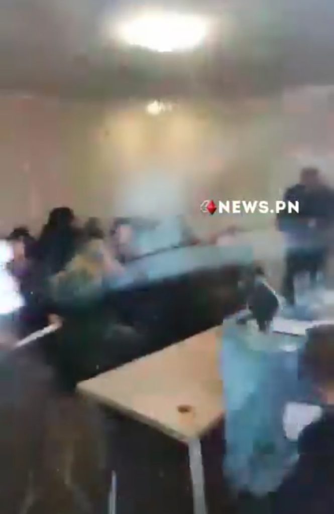 ယူကရိန်းရဲတပ်ဖွဲ့က ထုတ်ပြန်ပြီး လူမှုကွန်ရက်မှာ ပျံ့နှံ့နေတဲ့ ရုပ်သံဖိုင်ထဲက ဖြစ်စဥ်ဟာ သောကြာနေ့(ဒီဇင်ဘာ ၁၅ ရက်) ဖြစ်ခဲ့တာဖြစ်ပြီး ရုပ်သံအရ အသက် ၆၀ လောက်အမျိုးသားတစ်ဦးက လူ ၃၀ လောက် စုဝေးတိုင်ပင်နေတဲ့ အစည်းအဝေးခန်းထဲဝင်လာပြီး ခဏရပ်တန့်ကာ စကားတချို့အော်ပြောရင်း သူ့အိတ်ကပ်ထဲ အသင့်ထည့်လာတဲ့ လက်ပစ်ဗုံးသုံးလုံးကို လုံခြုံရေးပင်ဆွဲဖြုတ် နှစ်လုံးကို ကြမ်းပြင်ပေါ်ပစ်ထည့်လိုက်လို့ ဆက်တိုက်ပေါက်ကွဲသွားပြီး ကျန်တစ်လုံးကတော့ သူ့လက်ထဲမှာ ပေါက်ကွဲသွားတဲ့ပုံစံတွေ့မြင်ရတာပါ။