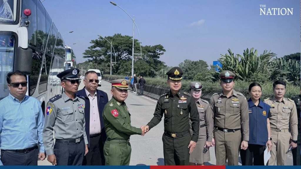 တာချီလိတ်မြို့ စစ်ဗျူဟာမှူး ဗိုလ်မှူးကြီး သူရဇော်လွင်စိုးက ထိုင်းနိုင်ငံသား ၁၁၁ ဦးကို ထိုင်းအာဏာပိုင်တွေထံ လွှဲပြောင်းပေးအပ်ခဲ့တာဖြစ်ပြီး ထိုင်းနိုင်ငံသားတွေ မယ်ဆိုင်မြို့ကို ရောက်ရှိချိန်မှာ ထိုင်း-မြန်မာ နယ်ခြားကော်မတီ ဥက္ကဋ္ဌ Natee Timsen နဲ့ တခြား ထိုင်းတာဝန်ရှိသူတွေက ကြိုဆိုနှုတ်ဆက်ကြပါတယ်။