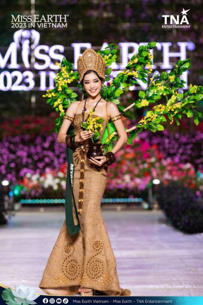 သူမဟာ National Costume Competition ပွဲမှာ အုန်းသီးခွံကို အဓိကအခြေခံ မြန်မာမှု ၊ မြန်မာဟန်မပျက်တဲ့ “ပုဂံခေတ် ရေကစားနေသော လှပျိုဖြူမလေး” ဝတ်စုံနဲ့ဝင်ရောက်ယှဉ်ပြိုင်ခဲ့ရာ လက်ရှိ Top 12 ကို ဝင်ရောက်နေပြီလည်း ဖြစ်ပါတယ်။