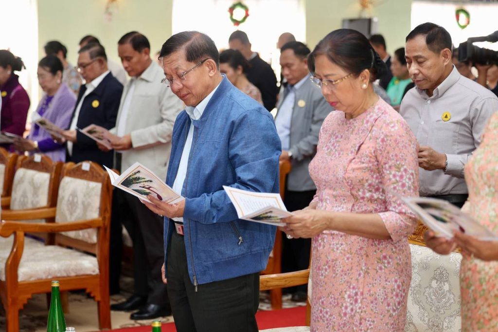 SAC အစိုးရလက်ထက်တွင်လည်း ငြိမ်းချမ်းရေးအတွက် လုပ်ငန်းစဉ်များ ချမှတ်ပြီး အားသွန်ခွန်စိုက် ကြိုးပမ်းဆောင်ရွက်လျက်ရှိကြောင်း၊ ယနေ့ ကြွရောက်လာကြသည့် ခရစ်ယာန်ဘာသာဝင် ဆရာတော်ကြီးများနှင့် ခရစ်ယာန်ဘာသာဝင်များအနေဖြင့်လည်း မိမိတို့နေထိုင်ရာဒေသ၊ မိမိတို့နေထိုင်ရာ နိုင်ငံတော် ထာဝရငြိမ်းချမ်းရေးရရှိနိုင်ရေးအတွက် မိမိတို့ တတ်နိုင်သည့်ဘက်မှ တတ်နိုင်သမျှ နည်းလမ်းများဖြင့် အုတ်တစ်ချပ် သဲတစ်ပွင့်အဖြစ် ပါဝင်ဆောင်ရွက်ပေးကြရန် မေတ္တာရပ်ခံပြောကြားလိုကြောင်း SAC ဥက္ကဋ္ဌက ပြောကြားသည်။
