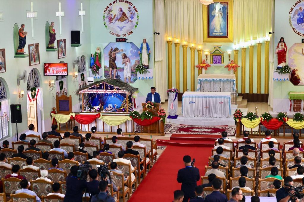 နိုင်ငံတော်စီမံအုပ်ချုပ်ရေးကောင်စီနှင့် တပ်မတော်အနေဖြင့် ငြိမ်းချမ်းရေးအတွက် အမြဲတံခါးဖွင့်ထားပြီး ထာဝစဉ်ဖိတ်ခေါ်ကြိုဆိုလျက်ရှိကြောင်း နိုင်ငံတော်စီမံအုပ်ချုပ်ရေးကောင်စီ(SAC) ဥက္ကဋ္ဌ ဗိုလ်ချုပ်မှူးကြီးမင်းအောင်လှိုင်က နေပြည်တော်ရှိ စိန့်မိုင်ကယ်ကက်သလစ်ဘုရားကျောင်း၌ ယနေ့ ကျင်းပပြုလုပ်သည့် ခရစ်တော်မွေးနေ့(ခရစ္စမတ်) ကျေးဇူးတော်ချီးမွမ်းခြင်း အခမ်း အနားတွင် ပြောကြားသည်။