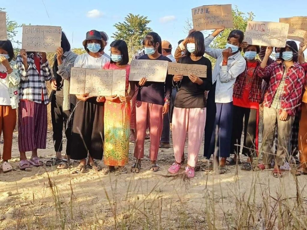 ပုံစာ။ BNRA တပ်ဖွဲ့ဝင်တွေကို NUG ဖမ်းဆိီးထားလို့ ဆန္ဒပြမှုမြင်ကွင်း။