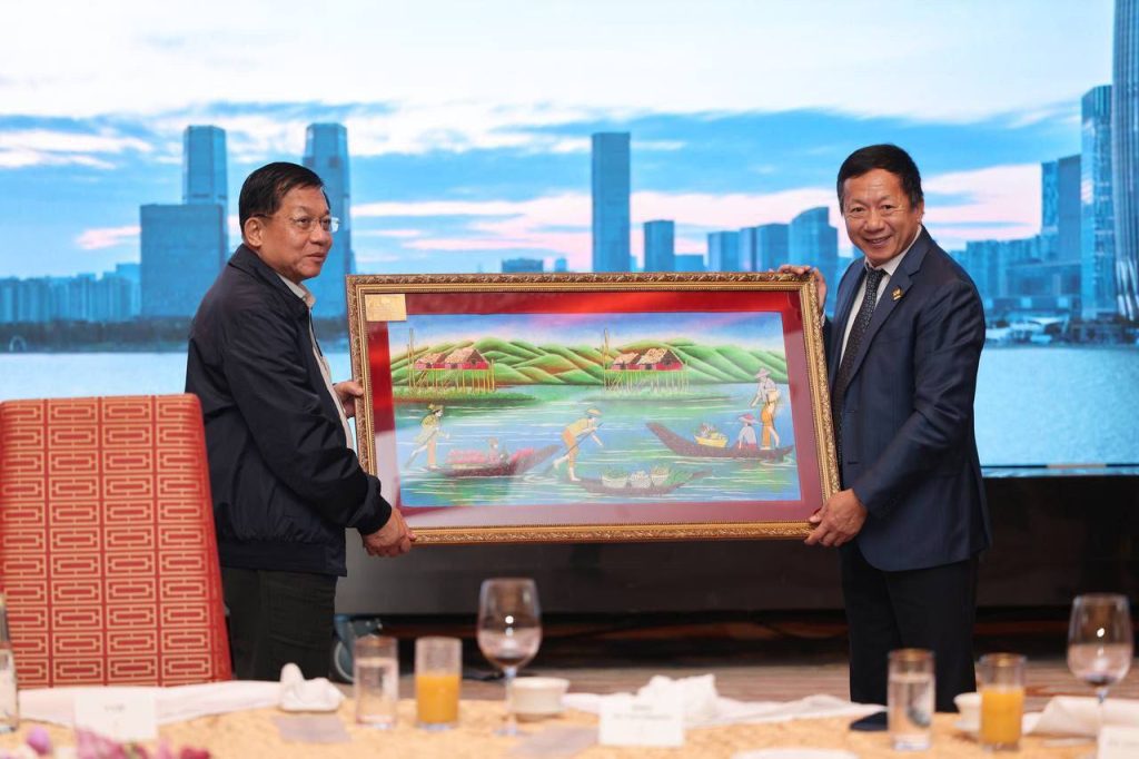 ထို့နောက် နိုင်ငံတော်စီမံအုပ်ချုပ်ရေးကောင်စီဥက္ကဋ္ဌ နိုင်ငံတော်ဝန်ကြီးချုပ်နှင့် Mrs. Gillian Li တို့သည် အမှတ်တရလက်ဆောင်ပစ္စည်းများ အပြန်အလှန်ပေးအပ်ကြပြီး စုပေါင်းမှတ်တမ်းတင် ဓာတ်ပုံရိုက်ခဲ့ကြကြောင်း သတင်းရရှိသည်။