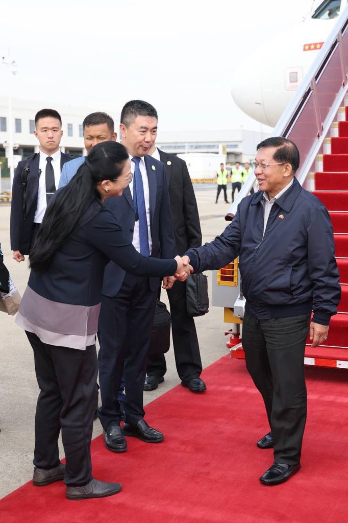 တရုတ်ပြည်သူ့သမ္မတနိုင်ငံ၊ ကူမင်းမြို့၌ ကျင်းပခဲ့သည့် အဋ္ဌမအကြိမ်မြောက် မဟာမဲခေါင်ဒေသခွဲ ထိပ်သီးအစည်းအဝေး 8th Greater Mekong Subregion(GMS) အပါအဝင် ထိပ်သီးအစည်းအဝေးများသို့ တက်ရောက်ခဲ့သော နိုင်ငံတော်စီမံအုပ်ချုပ်ရေးကောင်စီဥက္ကဋ္ဌ နိုင်ငံတော်ဝန်ကြီးချုပ် ဗိုလ်ချုပ်မှူးကြီးမင်းအောင်လှိုင် ဦးဆောင်သည့် မြန်မာအဆင့်မြင့်ကိုယ်စားလှယ်အဖွဲ့သည် နိုဝင်ဘာ ၉ ရက် နံနက်ပိုင်းတွင် ချုံချင့်မြို့၊ ကျန်းပေအပြည်ပြည်ဆိုင်ရာလေဆိပ်မှ ရှန်းကျန့်မြို့သို့ထွက်ခွာရာ ချုံချင့်မြို့၊ ဒုတိယမြို့တော်ဝန် Mr. Shang Kui နှင့် အဖွဲ့ဝင်များ၊ ချုံချင့်မြို့ရှိ မြန်မာကောင်စစ်ဝန်ချုပ်ရုံးမှ ကောင်စစ်ဝန်ချုပ် ဦးကျော်ဇေယျာလင်းနှင့် တာဝန်ရှိသူများက လေဆိပ်၌ ပို့ဆောင်နှုတ်ဆက်ကြသည်။