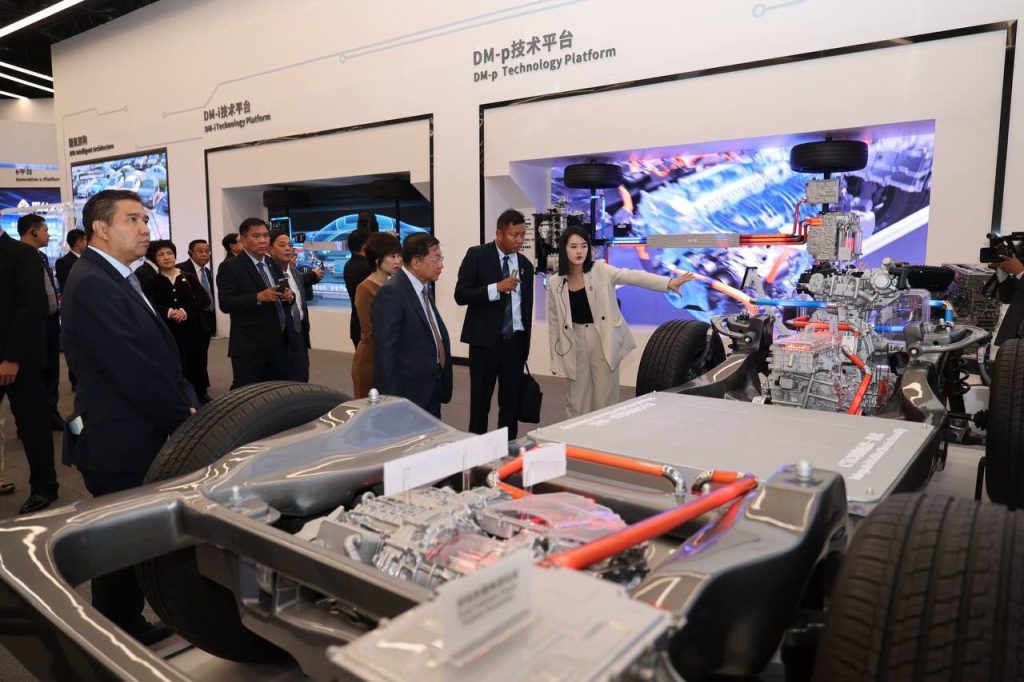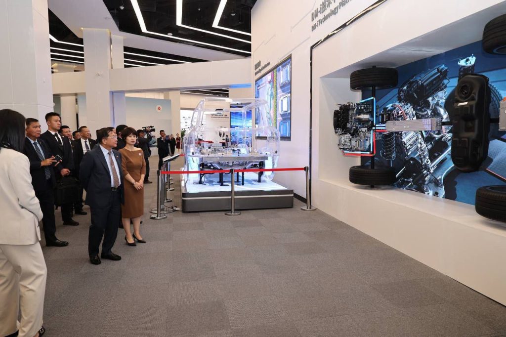 ယင်းနောက် ယနေ့နံနက်ပိုင်းတွင် နိုင်ငံတော်စီမံအုပ်ချုပ်ရေးကောင်စီဥက္ကဋ္ဌ နိုင်ငံတော်ဝန်ကြီးချုပ်နှင့် အဖွဲ့ဝင်များသည် ရှန်းကျန့်မြို့ရှိ BYD မော်တော်ကားထုတ်လုပ်ရေးကုမ္ပဏီသို့ ရောက်ရှိလေ့လာကြရာ ကုမ္ပဏီမှ Asia-Pacific Auto Sales Division Country Head of BYD Myanmar ဖြစ်သူ Mrs. Gillian Li နှင့် တာဝန်ရှိသူများက ကြိုဆိုနှုတ်ဆက်ကြပြီး ကုမ္ပဏီမှထုတ်လုပ်ထားသည့် BYD-U9 မော်ဒယ်ဖြင့် သရုပ်ပြသသည်။ ထို့နောက် ကုမ္ပဏီပြခန်းအတွင်း၌ ထုတ်လုပ်ထားသည့် ကားအမျိုးအစားများအား တစ်စီးချင်းစီအလိုက်ရှင်းလင်းပြသပြီး ကုမ္ပဏီသမိုင်းအကျဉ်းနှင့် လုပ်ငန်းဆောင်ရွက်နေမှုမှတ်တမ်းကို ဖွင့်လှစ်ပြသည်။