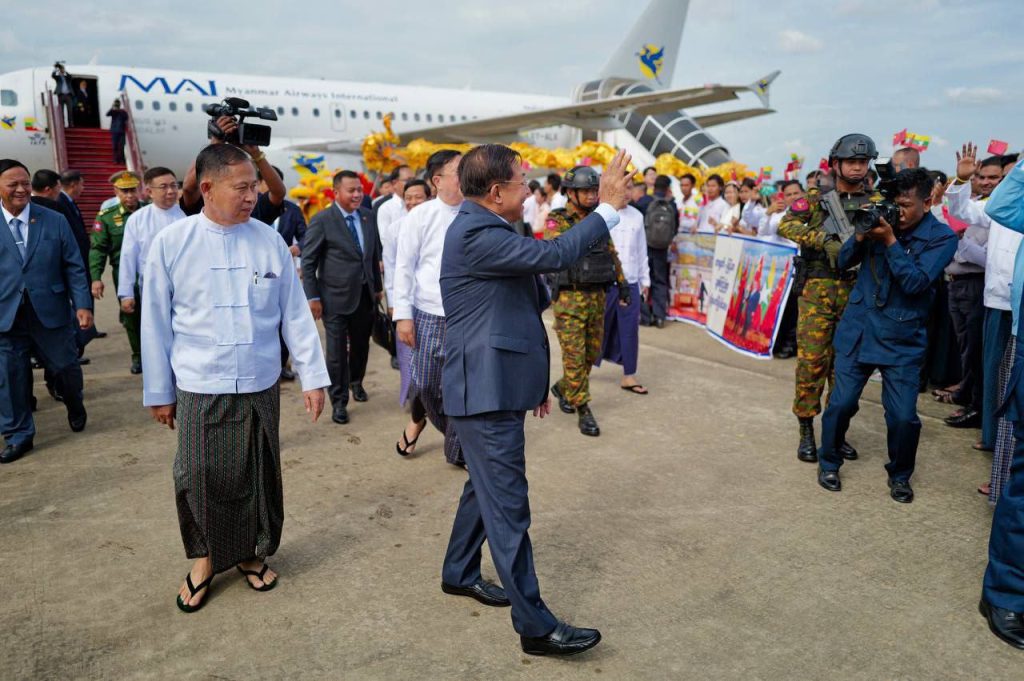 တရုတ်ပြည်သူ့သမ္မတနိုင်ငံတွင် ကျင်းပပြုလုပ်ပြီးစီးခဲ့သည့် အဋ္ဌမအကြိမ် မဟာမဲခေါင်ဒေသခွဲ ထိပ်သီးအစည်းအဝေး (8th Greater Mekong Subregion Summit) အပါအဝင် ထိပ်သီးအစည်းအဝေးများသို့ တက်ရောက်ခဲ့သည့် နိုင်ငံတော်စီမံအုပ်ချုပ်ရေးကောင်စီဥက္ကဋ္ဌ နိုင်ငံတော်ဝန်ကြီးချုပ် ဗိုလ်ချုပ်မှူးကြီးမင်းအောင်လှိုင် ဦးဆောင်သည့် မြန်မာအဆင့်မြင့်ကိုယ်စားလှယ်အဖွဲ့ဝင်များသည် ယနေ့မွန်းလွဲပိုင်းတွင် တရုတ်ပြည်သူ့သမ္မတနိုင်ငံ၊ ရှန်းကျန့်မြို့၊ ဘောင်အန်းအပြည်ပြည်ဆိုင်ရာလေဆိပ်မှ အပြည်ပြည်ဆိုင်ရာ မြန်မာလေကြောင်း (MAI) အထူးလေယာဉ်ဖြင့် နေပြည်တော်တပ်မတော်လေဆိပ်သို့ထွက်ခွာရာ မြန်မာနိုင်ငံဆိုင်ရာ တရုတ်ပြည်သူ့သမ္မတနိုင်ငံသံအမတ်ကြီး Ms. Ma Jia ၊ တရုတ်နိုင်ငံဆိုင်ရာ မြန်မာနိုင်ငံသံအမတ်ကြီး ဦးတင်မောင်ဆွေ၊ မြန်မာစစ်သံ (ကြည်း၊ ရေ၊ လေ) ဗိုလ်မှူးချုပ်ဇော်ဇော်နိုင်၊ ရှန်းကျန့်မြို့ ဒုတိယမြို့တော်ဝန် Mr. Dai Jin Tao ၊ နန်နင်းမြို့မှ မြန်မာကောင်စစ်ဝန်ချုပ်ရုံး၊ ကောင်စစ်ဝန်ချုပ် ဒေါ်ခိုင်ဆုလင်းနှင့် တာဝန်ရှိသူများက လေဆိပ်၌ ပို့ဆောင်နှုတ်ဆက်ကြသည်။