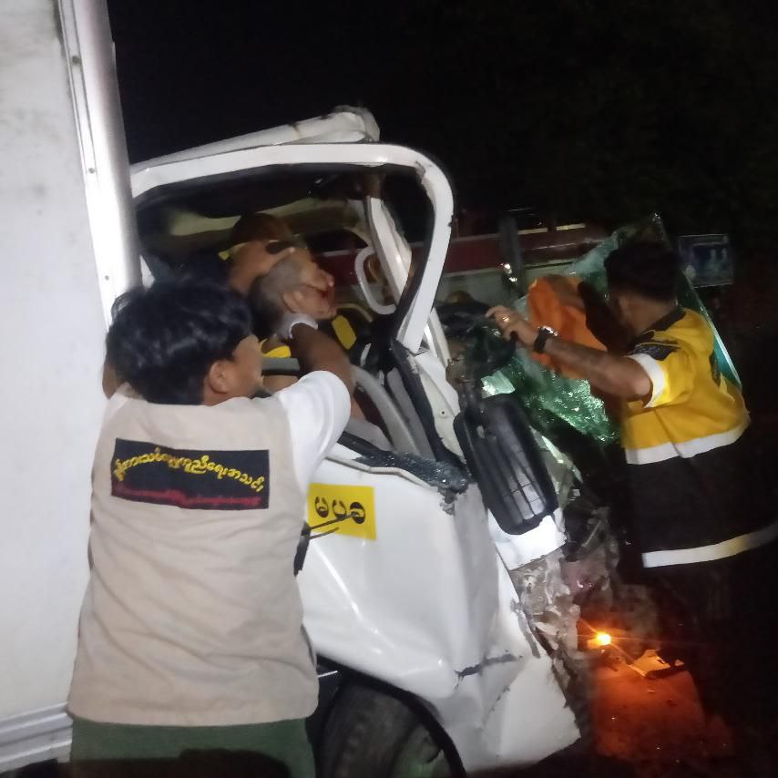 ကားခေါင်းအတွင်း ညပ်နေသော အသက် ၃၉ နှစ်အရွယ် ယာဥ်မောင်း အမျိုးသားကို လှိုင်သာယာမြို့နယ်မီးသတ်စခန်းမှ မီးငြှိမ်းသတ်ယာဉ် ၁ စီး၊ သန္ဓေမီးသတ်တပ်ဖွဲ့ဝင်များက ကယ်ဆယ်ရေးလုပ်ငန်းများဆောင်ရွက်ခဲ့ရာ ၂၇ မိနစ်အကြာတွင် ကယ်ထုတ်နိုင်ခဲ့ကြောင်း သိရသည်။