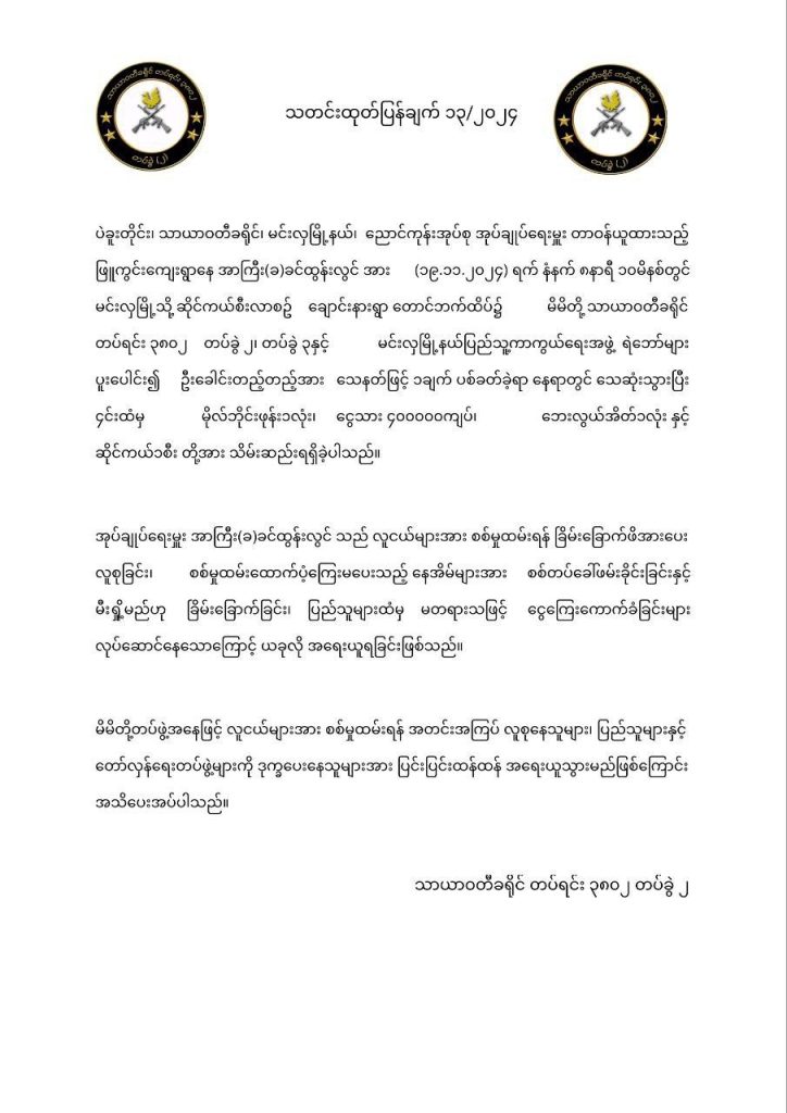 မင်းလှမြို့နယ်မှ အုပ်ချုပ်ရေးမှူးတစ်ဦးကို ယနေ့နံနက်ပိုင်းတွင် ပစ်သတ်လိုက်ပြီး ဖုန်းတစ်လုံး၊ ငွေကျပ် ၄ သိန်းနှင့် ဆိုင်ကယ်တစ်စီးကို လုယက်ခဲ့သည်ဟု ကျူးလွန်သည့် PDF သုံးဖွဲ့က ယခု ဝန်ခံချက်ထုတ်ပြန်လာသည်။