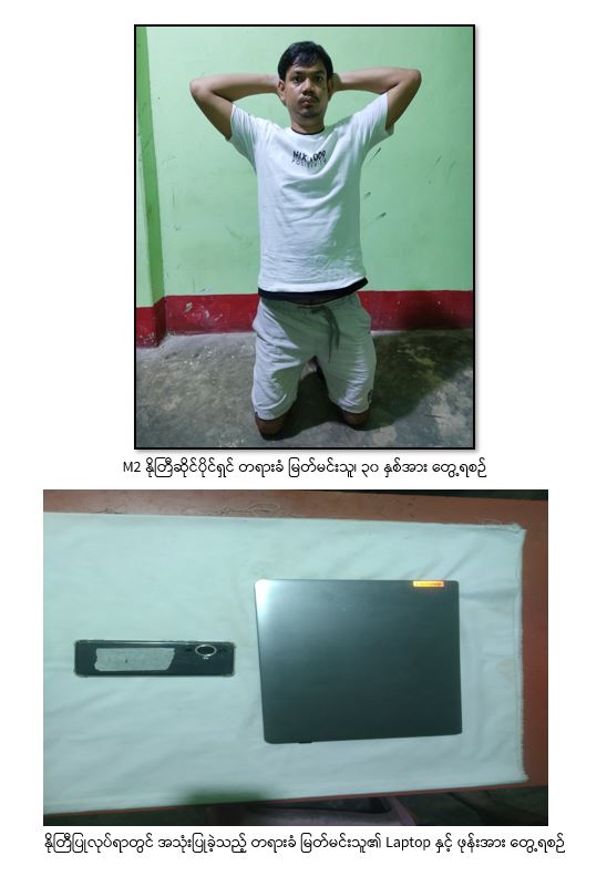 ထို့အပြင် တရားခံ သိဏ်းချမ်း(ခ)သိန်းဝင်း၏ ထွက်ဆိုချက်အရ အကြမ်းဖက်အုပ်စုအဖြစ် ကြေညာထားသော NUG အဖွဲ့ လက်အောက်ခံ တရားမဝင်ဆေးတက္ကသိုလ် (မန္တလေး)၊ ယာယီ ဆေးပညာဘွဲ့လက်မှတ်အတုအား ဘာသာပြန်ပေးခဲ့သည့် ကျောက်တံတားမြို့နယ်ရှိ M2 နိုတြီ ဘာသာပြန်ဆိုင်မှ ဆိုင်ပိုင်ရှင်ဖြစ်သူ မြတ်မင်းသူအား သက်သေခံပစ္စည်းများနှင့်အတူ ထပ်မံဖမ်းဆီးရမိခဲ့ပါသည်။