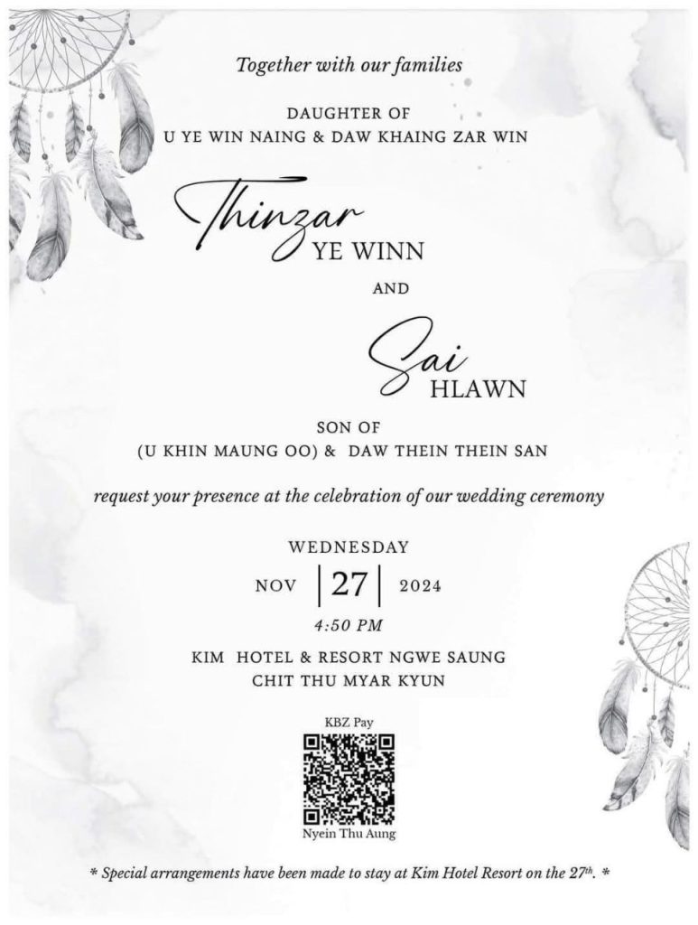 သူတို့ နှစ်ယောက်ဟာ လာမယ့် နိုဝင်ဘာ ၂၇ ရက် ညနေပိုင်းမှာလည်း ငွေဆောင်ရှိ Chit Thu Myar Kyun Beach Wedding အပြင် လာမယ့် ဒီဇင်ဘာ ၂၀ ရက်မှာ မန္တလေးက မိသားစုမိတ်ဆွေတွေအတွက် မင်္ဂလာပွဲနဲ့ Dinner ပွဲ ဆက်လက်ကျင်းပမယ်လို့ သိရပါတယ်။