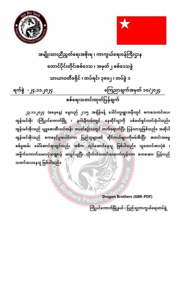 အမှိုက်ကောက်သူတစ်ဦးကို သတင်းပေးစွပ်စွဲ၍ ယမန်နေ့က သတ်ဖြတ်လိုက်သည်ဟု ကြိုပင့်ကောက် PDF အဖွဲ့က ဝန်ခံချက်ကို ယနေ့ထုတ်ပြန်သည်။