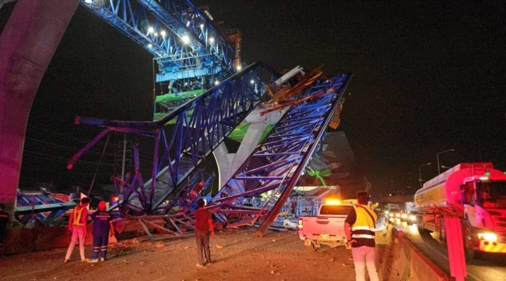 ထိုဖြစ်ရပ်တွင် Special Highway No. 82 အမည်ရှိ အမြန်လမ်းတည်ဆောက်ရေးလုပ်ငန်းကို PSCI ဆောက်လုပ်ရေးကုမ္မဏီက ဦးဆောင်လုပ်ကိုင်ခဲ့ခြင်းဖြစ်ပြီး အလေးချိန်တန်ချိန် ၄၀၀ ရှိ ကွန်ကရစ်တုံးနှင့် အလေးချိန်တန်ချိန် ၂၀၀ ရှိကွန်ကရစ်တုံးများကို ကရိန်းဖြင့် မပြီးရွှေ့ပြောင်းချိန်အတွင်း ကရိန်းပြုတ်ကျခဲ့ခြင်းမျိုးဖြစ်ကြောင်း ထိုင်းသတင်းများတွင်ဖော်ပြထားသည်။