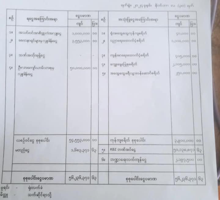 မ,တည်ငွေအဖြစ်ရှိနေရမယ်။ အခုက ပရဟိတအသင်းတွေက ဖောင်းပွလာတော့ ဘယ်လိုခေါ်မလဲ စည်းမျဥ်း၊စည်းကမ်းတစ်ခုကို သတ်မှတ်လိုက်တဲ့သဘောလားတော့ မသိဘူးပေါ့။ မြို့နယ်အဆင့်တို့ ခရိုင်အဆင့်တို့က မပါပါဘူး။ အသံမကြားပါဘူး။ ပြည်ထောင်စုအဆင့်နဲ့ တိုင်းအဆင့်အသင်းတွေ မှတ်ပုံတင်မှသာ