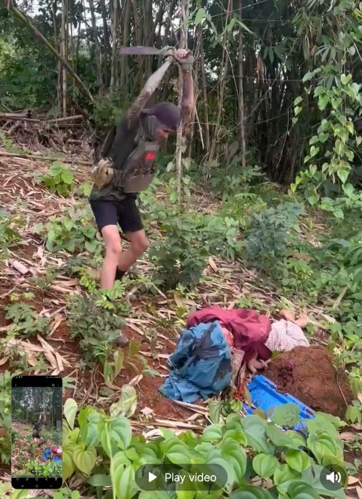 လက်နက်မဲ့သူတစ်ဦးကို ဖမ်းဆီးပြီး ရက်ရက်စက်စက်သတ်ဖြတ်တဲ့ NUG လက်အောက်ခံ ရေးဘီလူးရဲ့ လုပ်ရပ်ဟာ စစ်ရာဇဝတ်မှုကျူးလွန်တာဖြစ်ပေမဲ့ လတ်တလောမှာတော့ သတ်ဖြတ်ခံရသူကို MT News က အတည်မပြုနိုင်သေးဘဲ ရပ်ကျေးတာဝန်ရှိသူတစ်ဦးသာဖြစ်တယ်လို့ အကြမ်းဖျင်း သိရပါတယ်။