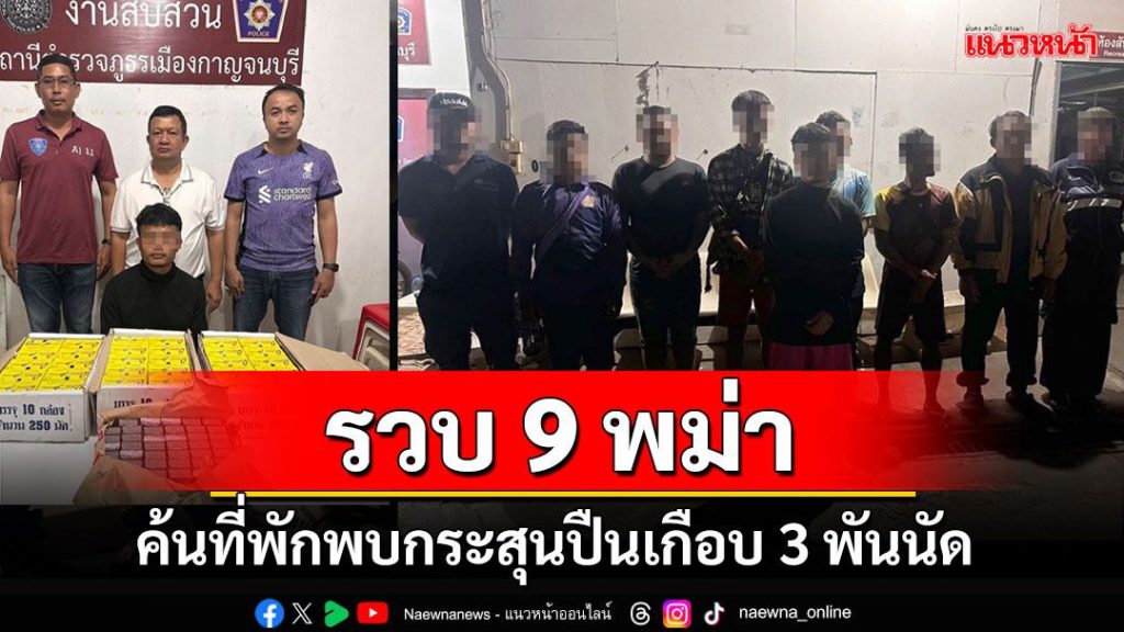 ယင်း မြန်မာနိုင်ငံသား ၉ ဦး ငှားရမ်းနေထိုင်သည့် ကန်ချဘူရီခရိုင်၊ မူယန်မြို့နယ်၊ အမှတ် (၁၅)၊ ဘန့်ကောင်ကျေးရွာရှိ နေအိမ်သို့ လုံခြုံရေးအဖွဲ့က သွားရောက်စစ်ဆေးခဲ့ရာ စက္ကူဂျပ်ဖာ ၄ လုံးဖြင့် ထည့်ထားသော ကျည်အတောင့် ၂၀၀၀ နှင့် ကျည်ဆံ ၇၅၀ ပါ ဂျပ်ဖာများကို ဖမ်းဆီးရမိခဲ့ကြောင်း သိရသည်။