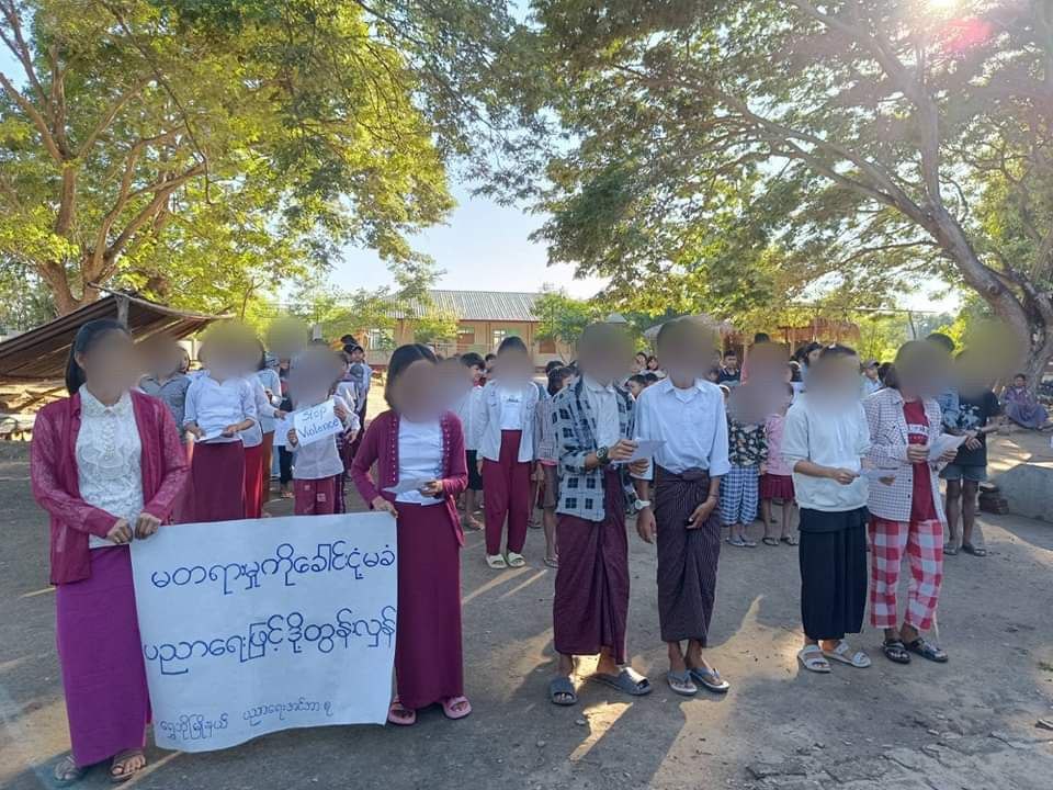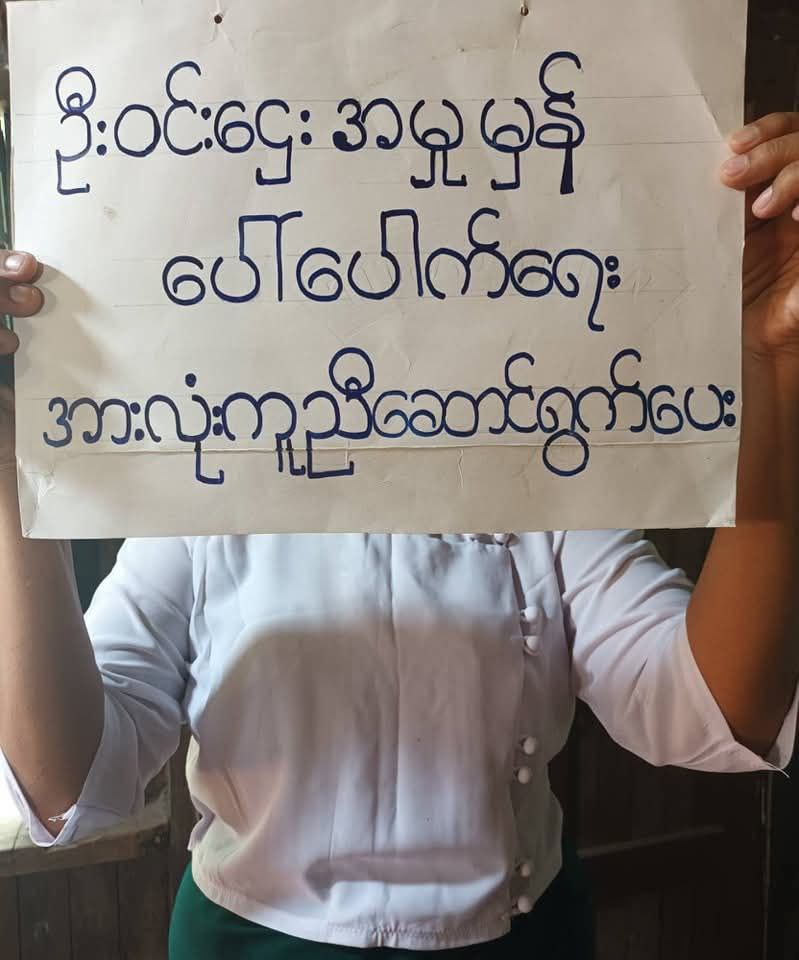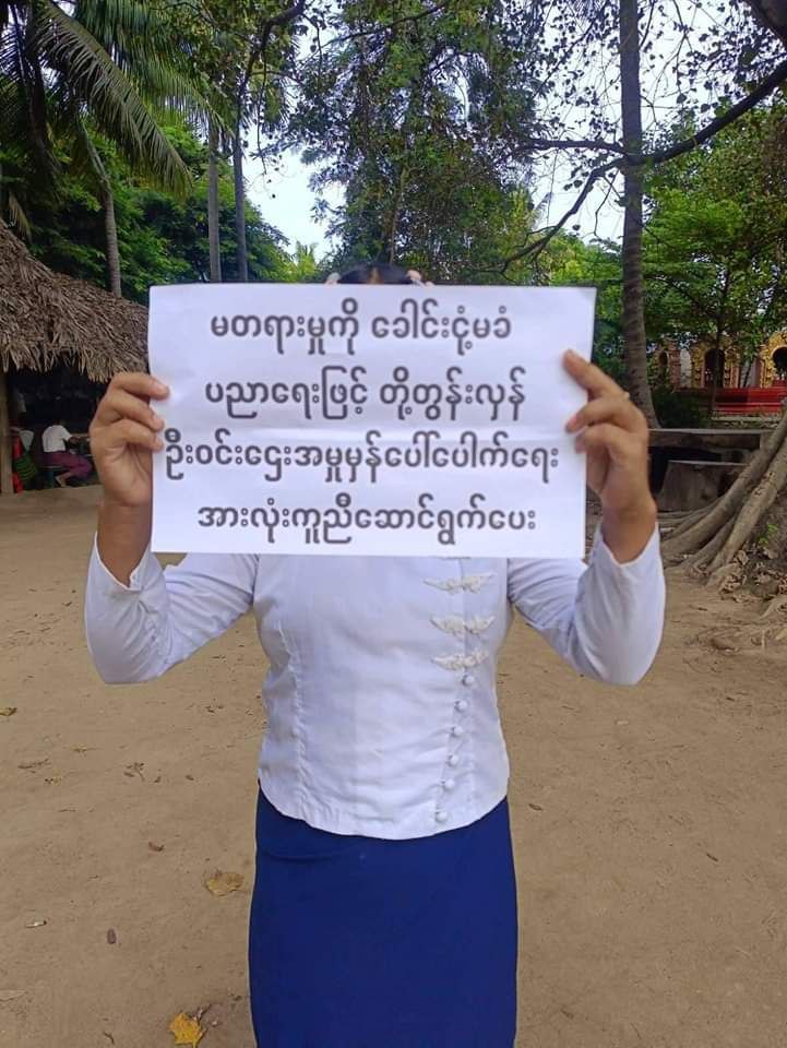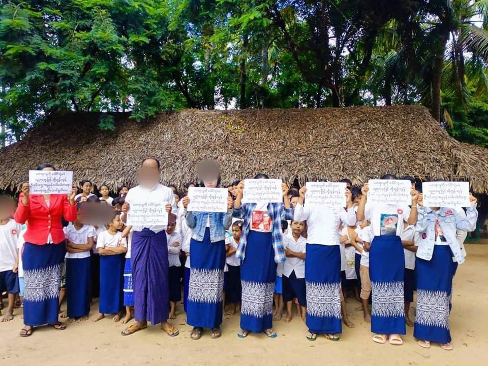 NUG လက်အောက်ခံ ပသုံးလုံးလက်နက်ကိုင်အဖွဲ့ (ပကဖ၊ ပအဖ၊ ပလဖ)တွေရဲ့ သစ်မှောင်ခိုမှုနဲ့ မူးယစ်ဆေးမှုတွေ NUG ထံတိုင်ကြားလို့ PDF ကြီးစိုးနယ်မြေမှာ သုံးလသမီးပါမချန် မိသားစုလိုက်လည်လှီးအသတ်ခံရတဲ့ CDM ကျောင်းဆရာနဲ့ NUG ရဲ့ ကနီမြို့နယ် ပညာရေးတာဝန်ခံဦးဝင်းဌေးမိသားစုအတွက် အမှုမှန်ဖော်ထုတ်ပေးဖို့ တစ်လပြည့်လှုပ်ရှားမှုကို အခြေခံပညာ ပညာရေးဝန်ထမ်းများ အထွေထွေသပိတ်ကော်မတီ(BEGSC)က ဒီနေ့မှာ လုပ်ဆောင်ဖော်ပြလာပါတယ်။