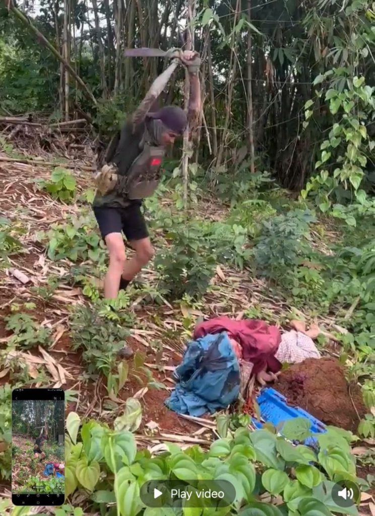 NUG လက်အောက်ခံ အထူးစစ်ဆင်ရေးတပ်ခွဲတစ်ခုဖြစ်ပြီး ရေးမြို့နယ်တစ်ဝိုက်မှာ ကျက်စားတဲ့ ရေးဘီလူး PDF အဖွဲ့က အဖွဲ့ခေါင်းဆောင် ရေးဘီလူးကိုယ်တိုင် အမျိုးသားတစ်ဦးရဲ့ လည်ပင်းကို ဓားနဲ့ခုတ်ပြီး လည်ပင်းဖြတ်နေတဲ့ ရုပ်သံ ( https://t.me/MT_News_Media/49710 ) ဒီဇင်ဘာ ၃ ရက်မှာ ထွက်ပေါ်လာခဲ့ပြီး ဒီရုပ်သံမှာ ရေးဘီလူးဟာ သက်လတ်ပိုင်းအမျိုးသားတစ်ဦးကို တုံးပေါ်တင်ရင်း လည်ပင်းကို ဓားရှည်နဲ့ ဆဲဆိုခုတ်ဖြတ်နေသလို “ငါမိဘတွေ အခုအချိန်အထိ ပြေးနေရတာ”၊ “မင်းတို့ကို ကမ္ဘာအဆုံးထိပဲ”လို့ စသလို မွန်နဲ့ ဗမာစကားတွေနဲ့ တောင်စဥ်ရေမရ ရေရွတ်ရင်း လည်ပင်းကို ခုတ်ဖြတ်နေတာ မြင်ရပါတယ်။