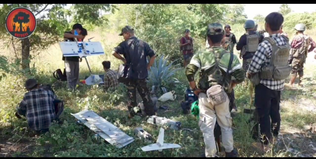 ပုံစာ။ Drone ဖြင့် တိုက်ခိုက်နေသော နွားထိုးကြီး PDF များနှင့် ထိခိုက်မှုများမြင်ကွင်း (Photo – CJ)