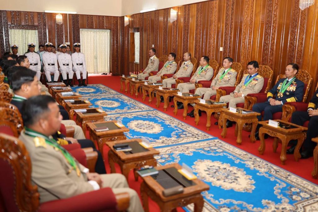 ထို့နောက် SAC ဥက္ကဋ္ဌက မိန့်ခွန်းပြောကြားရာတွင် “ဒီနေ့ကာလမှာ ပြည်တွင်းပြည်ပ အဖျက်သမားတွေဟာ Social Media ကို လက်နက်သဖွယ် အသုံးပြုပြီး အစိုးရနှင့် ပြည်သူ၊ ပြည်သူနှင့် တပ်မတော် သွေးကွဲအောင်၊ စည်းလုံးညီညွတ်မှု ပြိုကွဲအောင် ထိုးနှက်တိုက်ခိုက်လျက်ရှိနေတယ်။ အထူးသဖြင့် နိုင်ငံတော်တည်တံ့ခိုင်မြဲရေးနဲ့ တည်ငြိမ်အေးချမ်းရေးအတွက် နိုင်ငံတော်ရေး၊ကာကွယ်ရေးတာဝန် ထမ်းဆောင်နေတဲ့ တို့တပ်မတော်သားအချင်းချင်း စိတ်ဝမ်းကွဲအောင် သတင်းအတု၊ သတင်းအမှားတွေနဲ့ ထိုးနှက်တိုက်ခိုက်မှုကို လုပ်ဆောင်နေတာ မြင်တွေ့ရမှာဖြစ်တယ်။ အဲဒီလို တပ်မတော်ဖြိုခွဲရေးအတွက် ရည်ရွယ်ချက်ရှိရှိနဲ့ လုပ်ဆောင်နေတဲ့ သတင်းအတု၊ သတင်းအမှားတွေကို နားမယောင်မိဖို့လိုသလို မိမိတို့အနေနဲ့ တာဝန်ကျရာ ဌာနအသီးသီးကို ရောက်ရှိသွားတဲ့အချိန်မှာ တပ်မတော်သားနဲ့ မိသားစုဝင်တွေ သတင်းအတု၊ သတင်းအမှားများကြောင့် ယုံကြည်ချက်၊ ခံယူချက်တွေ မယိမ်းယိုင်သွားစေဖို့ တပ်တွင်းစည်းလုံးညီညွတ်ရေး ခိုင်မာအားကောင်းစေဖို့အတွက် စည်းရုံးလုပ်ဆောင်သွားဖို့လိုအပ်တယ်။ တပ်တွင်းစည်းလုံးညီညွတ်မှုရှိစေရေးအတွက် အထက်က ပေးအပ်တဲ့ အမိန့်နဲ့တာဝန်တွေကို ကျေပွန်စွာထမ်းဆောင်နိုင်ဖို့လိုသလို လက်အောက်ကို ထိတွေ့မှုများများနဲ့ ဦးဆောင်ပြီး နေ့စဉ်လုပ်ဆောင်ရတဲ့ တပ်တည်ဆောက်ရေးလုပ်ငန်းစဉ်ကြီး ၄ ရပ်ကို အောင်မြင်အောင် လုပ်ဆောင်သွားဖို့ အလေးထားမှာကြားလိုတယ်။ ရဲဘော်တို့ တပ်တွင်းစည်းလုံးညီညွတ်ရေးကို ခိုင်မာအားကောင်းအောင် တည်ဆောက်ရမှာဖြစ်သလို တစ်ဖက်ကလည်း တပ်အပြင်စည်းရုံးရေးကိုလည်း အောင်မြင်အောင် လုပ်ဆောင်သွားကြဖို့ လိုအပ်တယ်။ လက်ရှိအခြေအနေမှာ ဆန့်ကျင်ဘက်အဖွဲ့အစည်းတွေနဲ့ လူပုဂ္ဂိုလ်အချို့ဟာ တပ်မတော်အပေါ်မှာ ပြည်သူလူထုရဲ့ အထင်အမြင်တွေ လွဲမှားသွားစေဖို့အတွက် ပြည်ဖျက်မီဒီယာများနဲ့ ပူးပေါင်းပြီး တပ်မတော်ပုံရိပ်ကျဆင်းအောင် ပြောဆိုရေးသားနေကြတာကိုလည်း တွေ့ရှိရတယ်။ ဒီလိုလုပ်ဆောင်ချက်တွေဟာ တပ်မတော်ပေါ်မှာသာမက တစ်မျိုးသားလုံးရဲ့ စည်းလုံးညီညွှတ်မှုအပေါ်မှာ ဆိုးရွားစွာထိခိုက်လာနိုင်တာ ရဲဘော်တို့ အသိပဲဖြစ်တယ်။ ဒါကြောင့် ဆန့်ကျင်ဘက်အဖွဲ့အစည်းတွေ ပြည်ဖျက်မီဒီယားများရဲ့ ဆိုးရွားတဲ့လုပ်ဆောင်ချက်တွေအပေါ်မှာ အသိ၊ သတိနဲ့ ဆင်ခြင်ပြီးစစ်မှန်တဲ့ တပ်ပြင်စည်းရုံးရေးလုပ်ငန်းတွေကို အလေးထားလုပ်ဆောင်သွားရမှာဖြစ်တယ်” ဟု ထည့်သွင်းပြောကြားခဲ့သည်။
